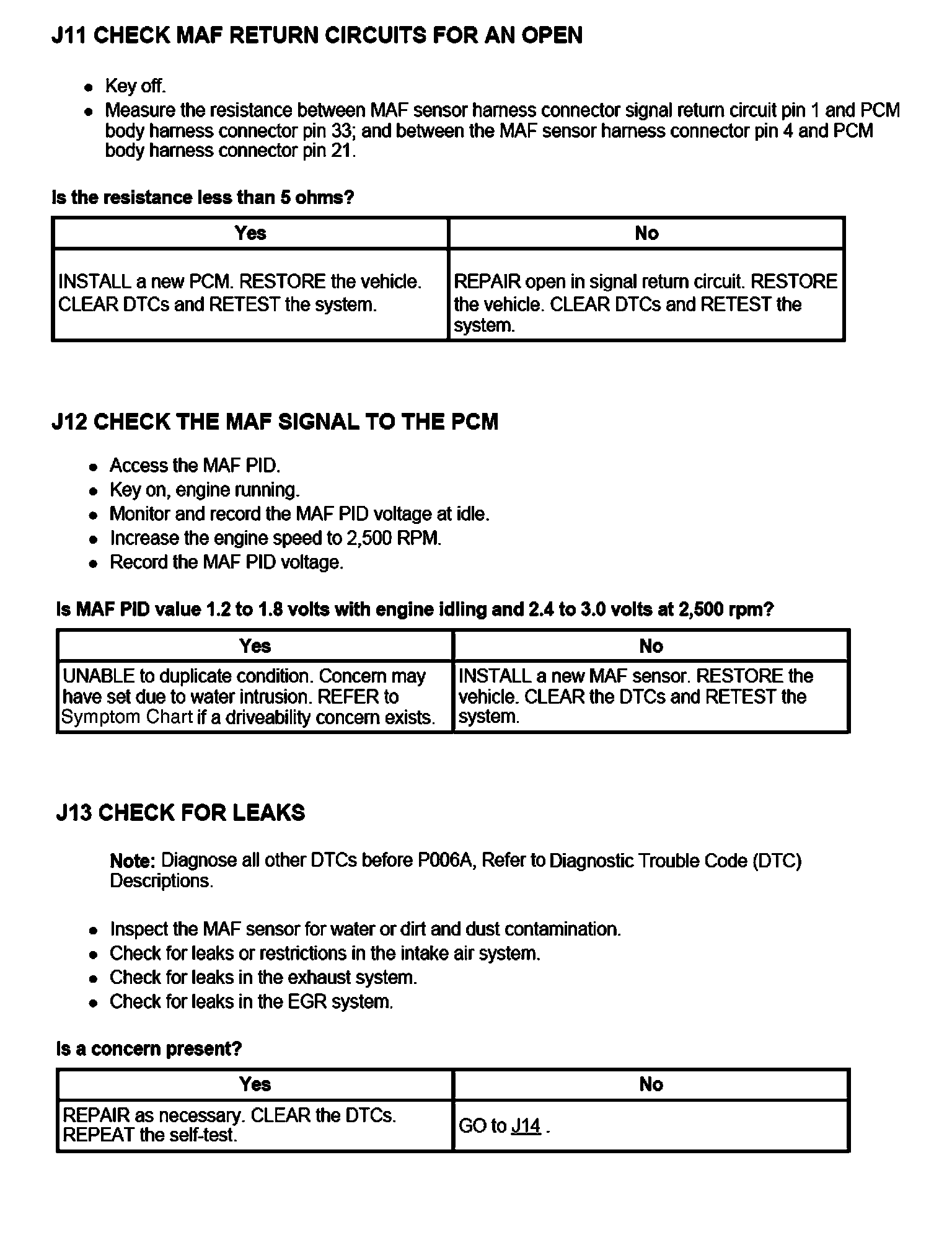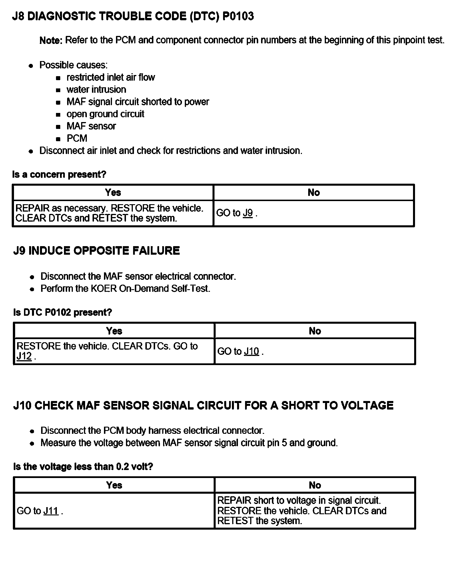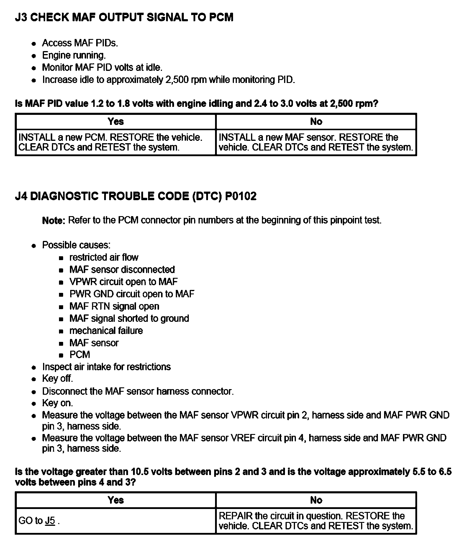 PINPOINT TEST J: MASS AIR FLOW (MAF) SENSOR