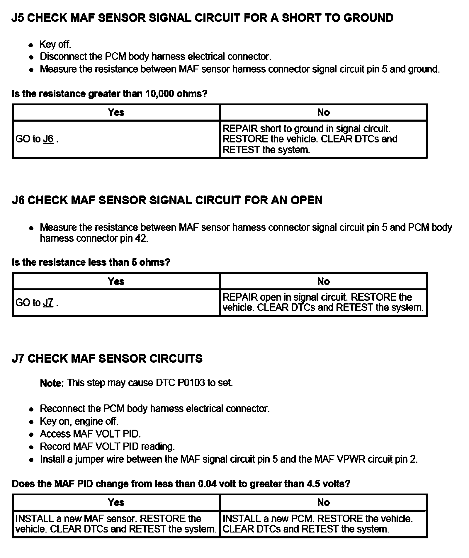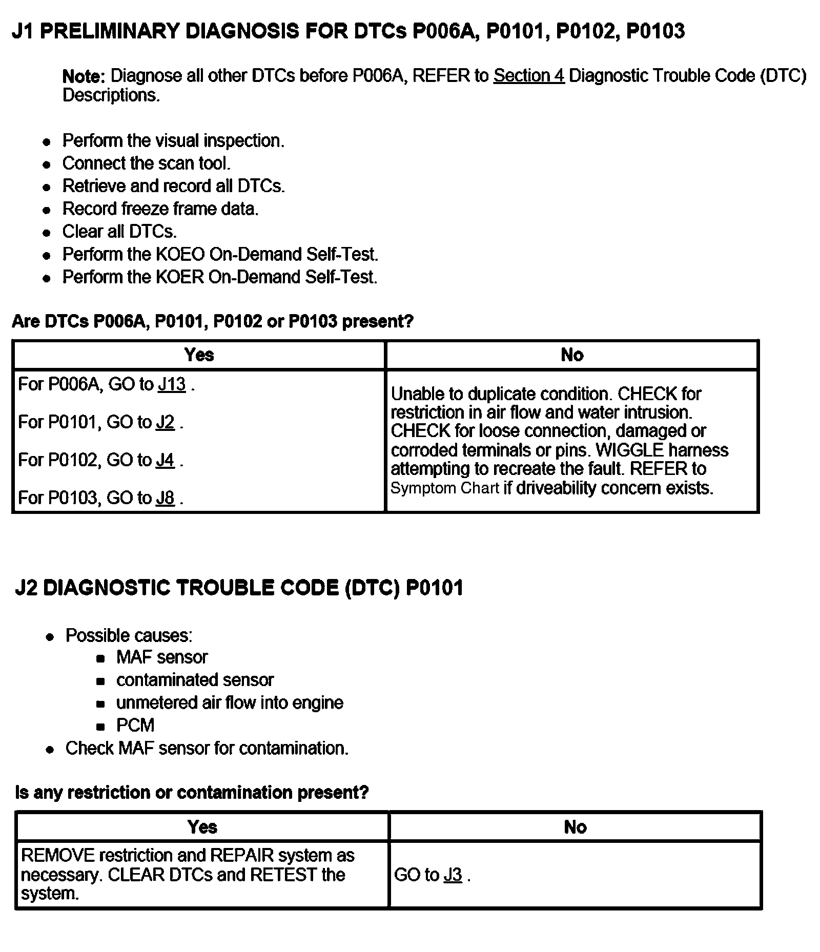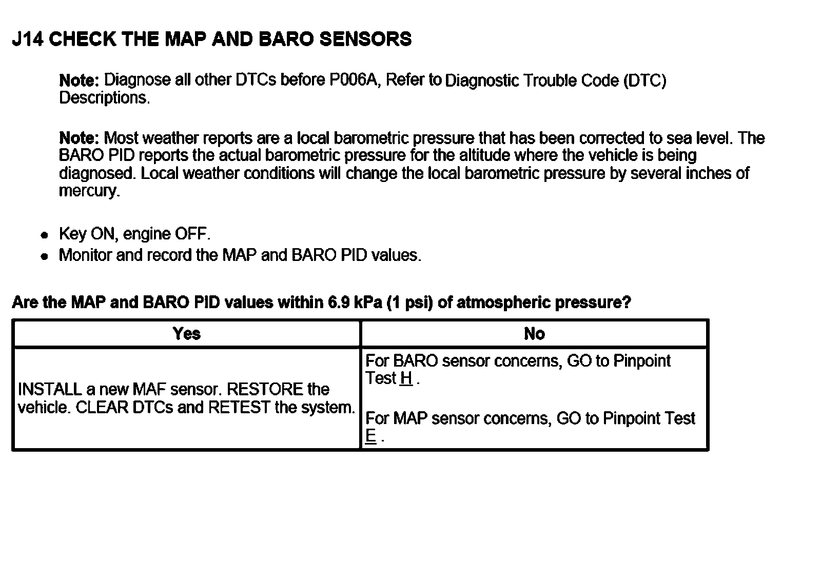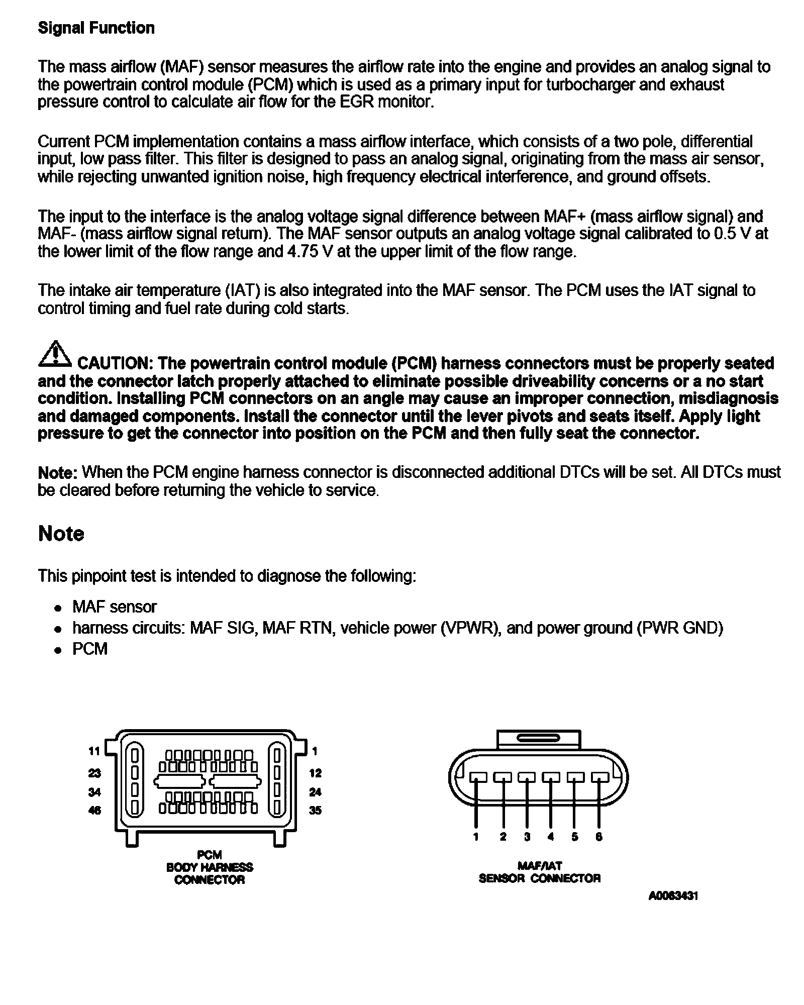 PINPOINT TEST J: MASS AIR FLOW (MAF) SENSOR