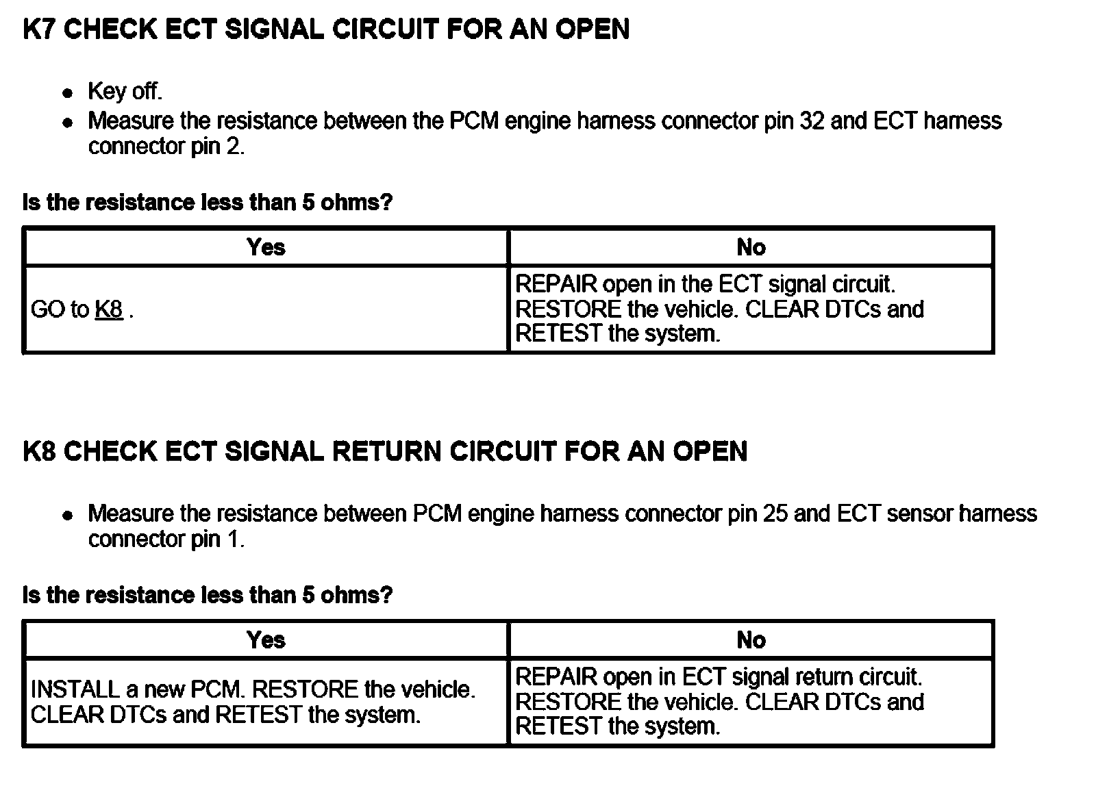 PINPOINT TEST K: ENGINE COOLANT TEMPERATURE (ECT) SENSOR