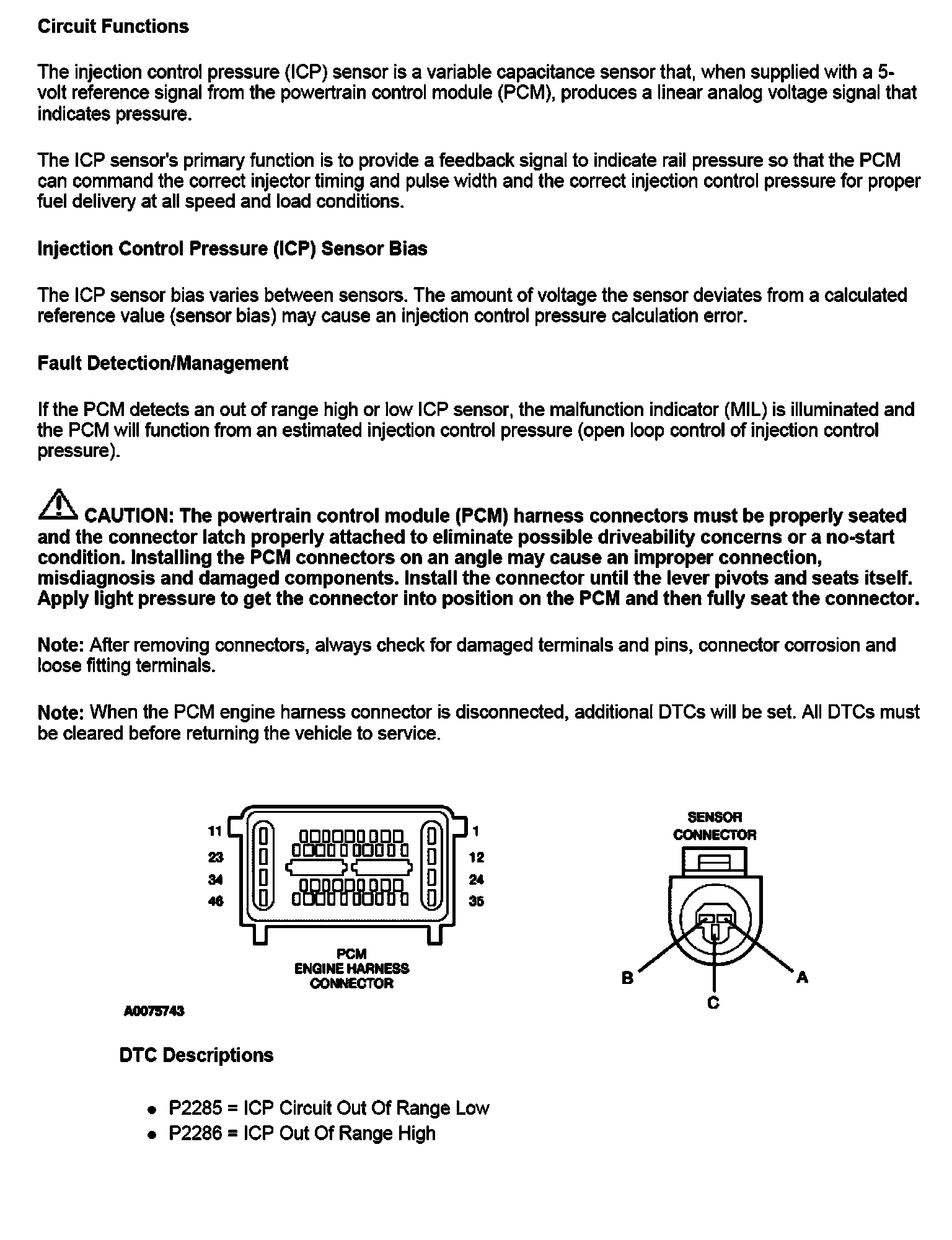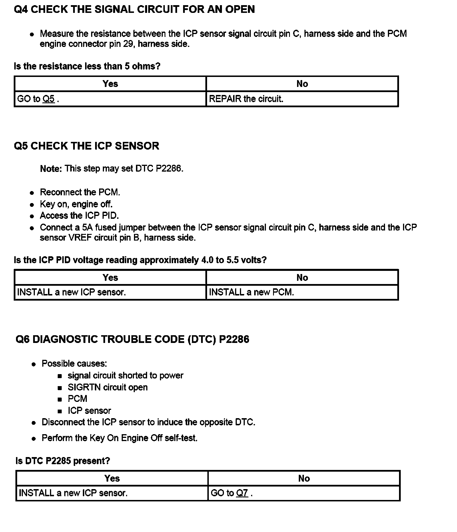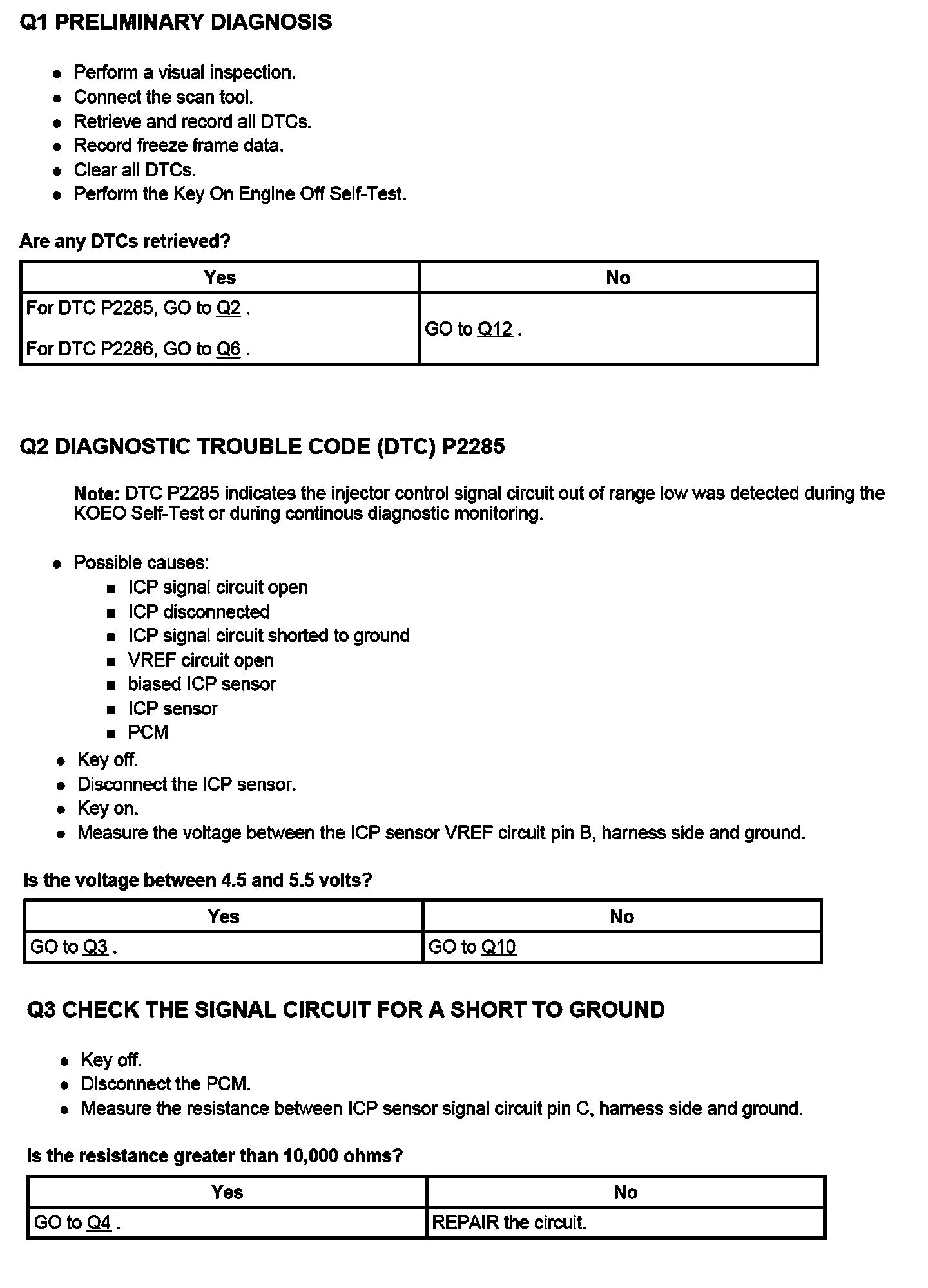 PINPOINT TEST Q: INJECTION CONTROL PRESSURE (ICP) SENSOR