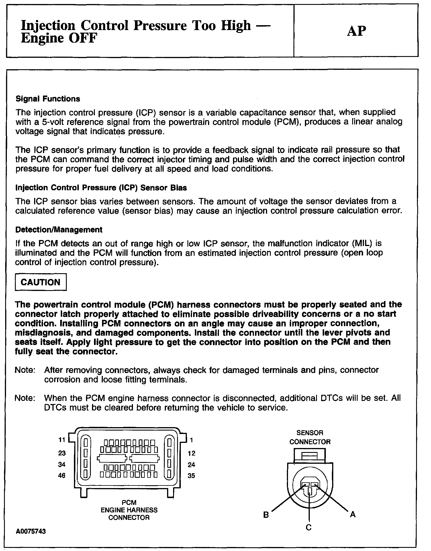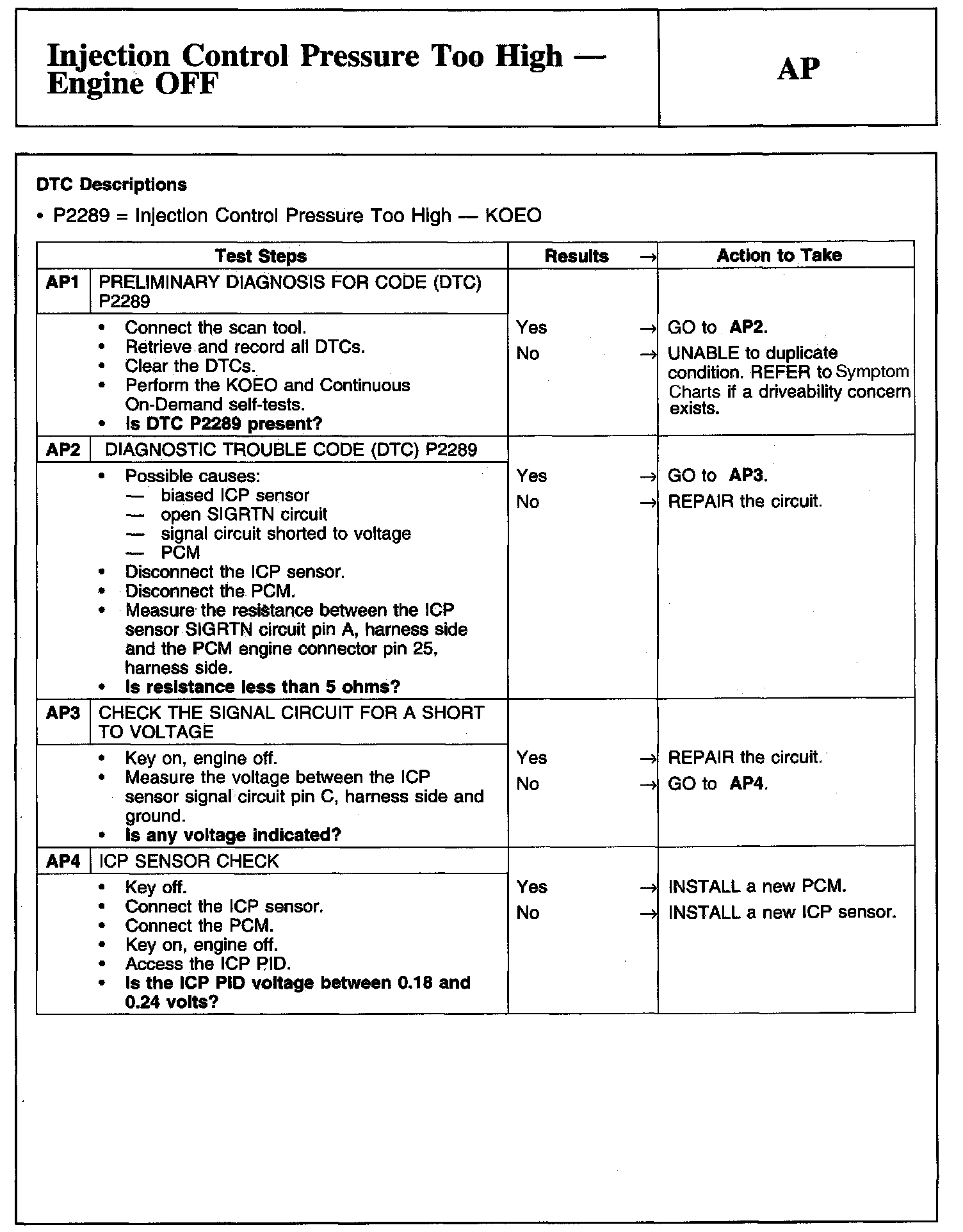 PINPOINT TEST AP: INJECTION CONTROL PRESSURE TOO HIGH - ENGINE OFF