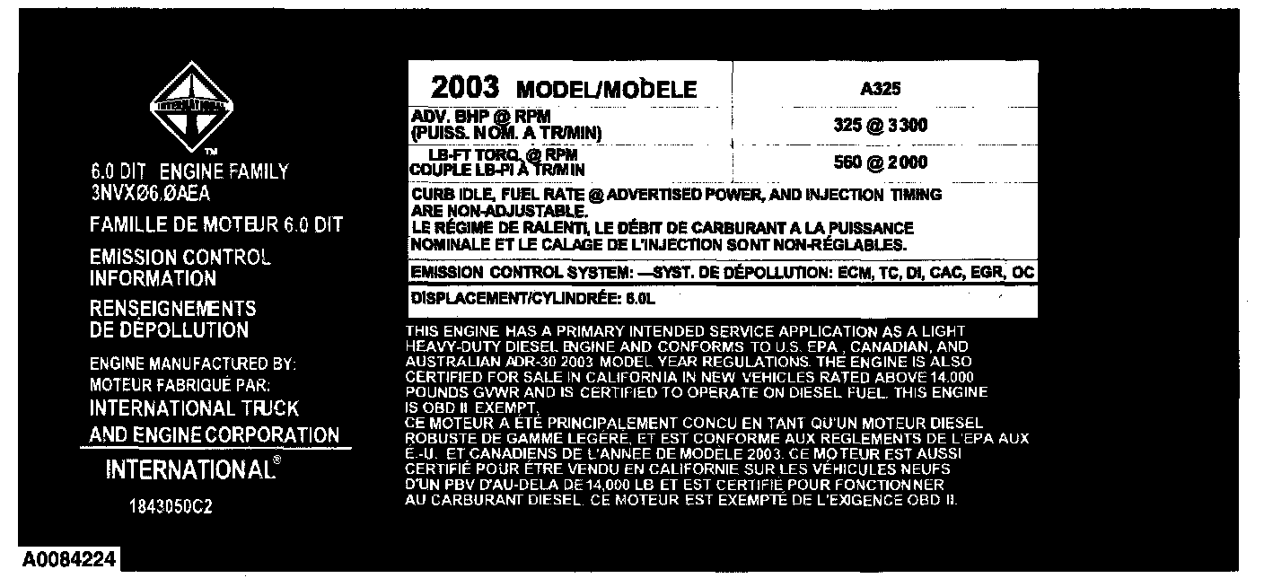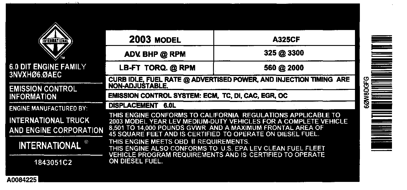 Each vehicle has a decal containing emission control information that applies specifically to the vehicle and engine.