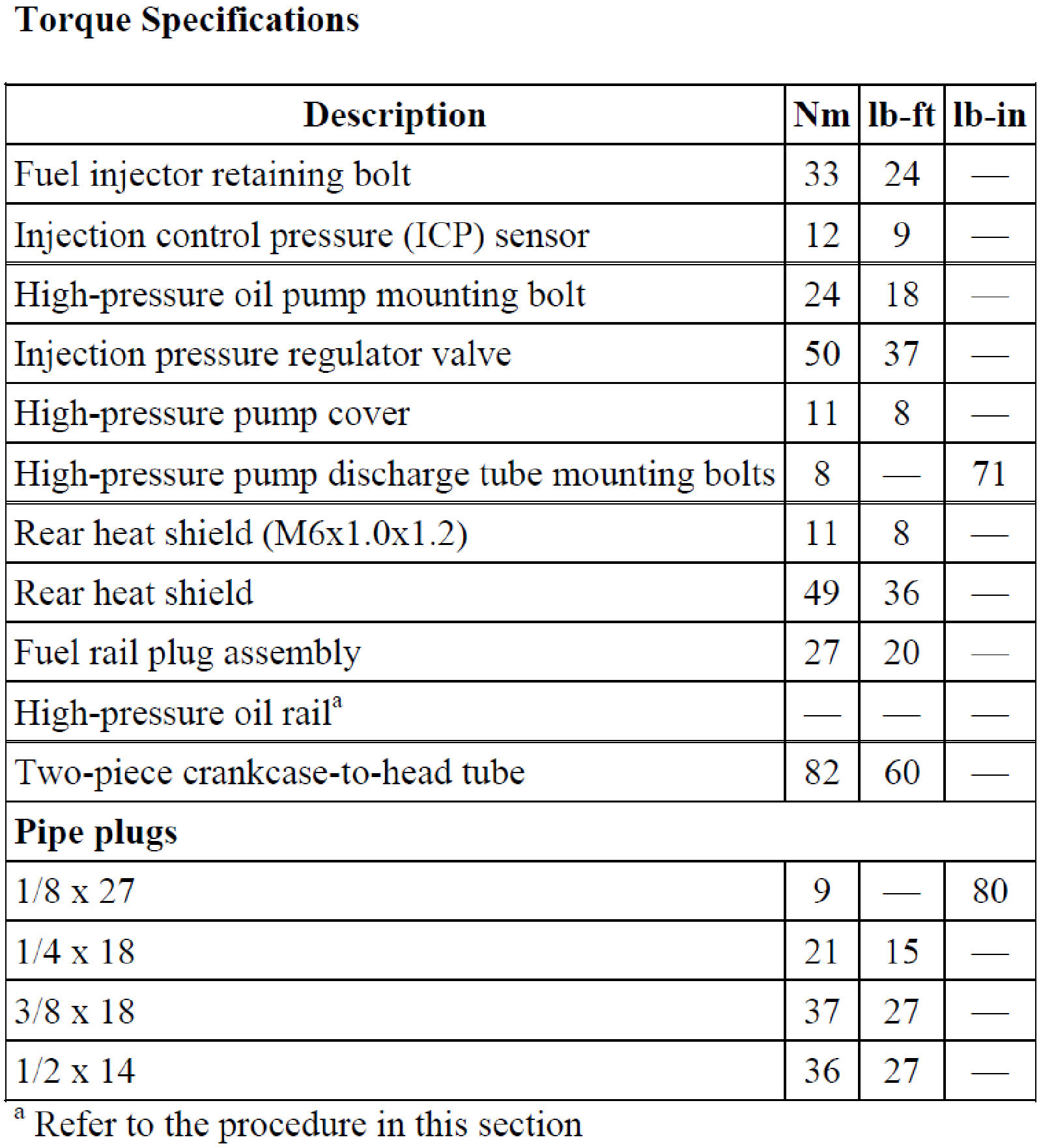 Torque Specifications