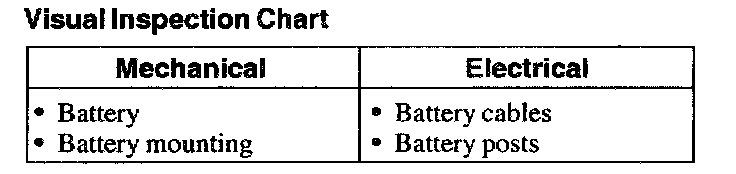 1. Verify the customer concern by operating the system.Visual Inspection Chart:
