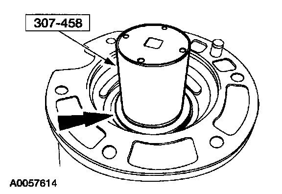 Inspect the rear case Teflon seal retainer for damage. If damage is evident, use the special tool to remove the seal retainer.