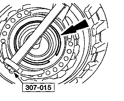 Using the special tool, remove the reverse clutch drum retaining ring.