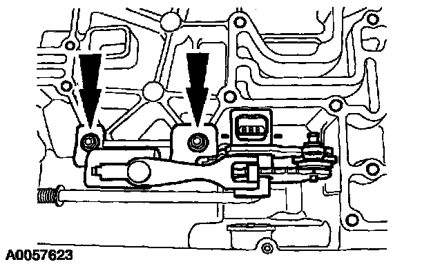 57. Remove the transmission range sensor, manual control lever and park rod as an assembly.