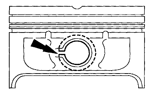 1. Measure the piston diameter 90 degrees from the piston pin at the point indicated.