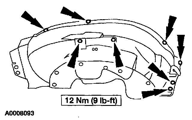- Remove the RH fender apron to inner fender bolts.