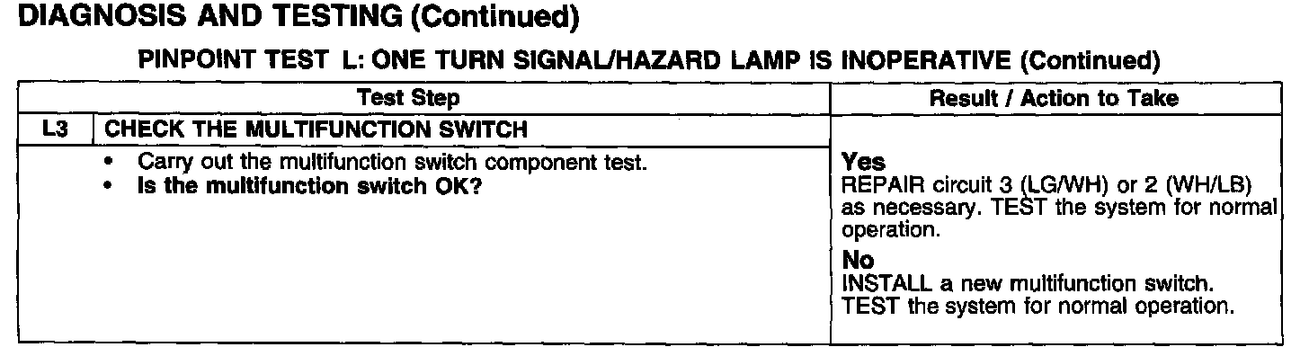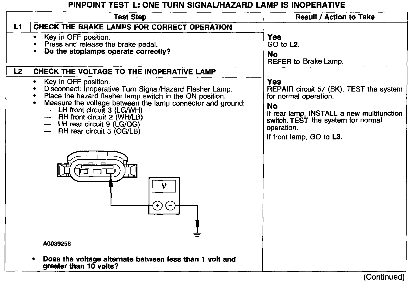 PINPOINT TEST L: ONE TURN SIGNAL/HAZARD LAMP IS INOPERATIVE