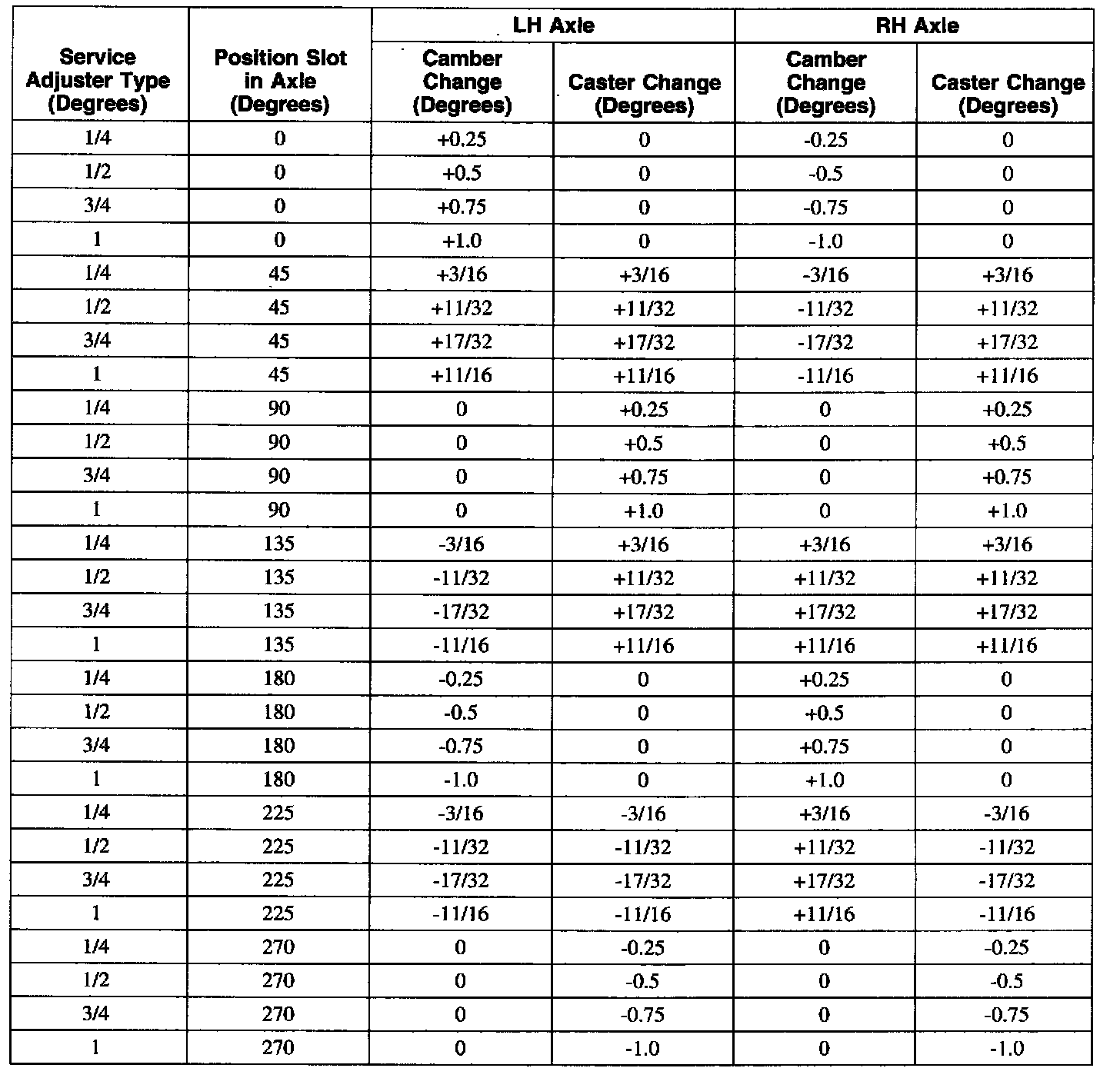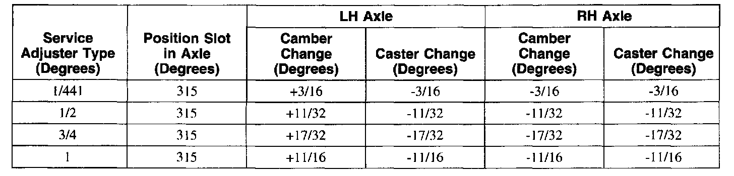 Camber/Caster Service Adjuster Selection Chart