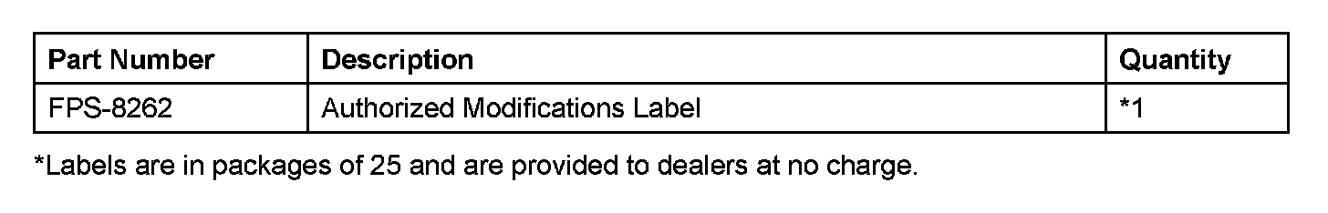 PARTS REQUIREMENTS / ORDERING INFORMATION