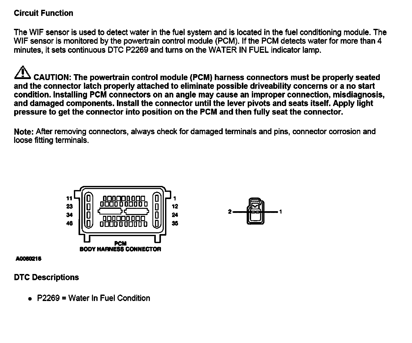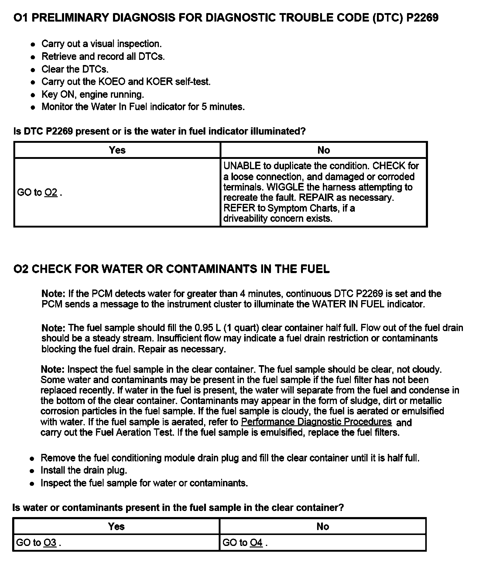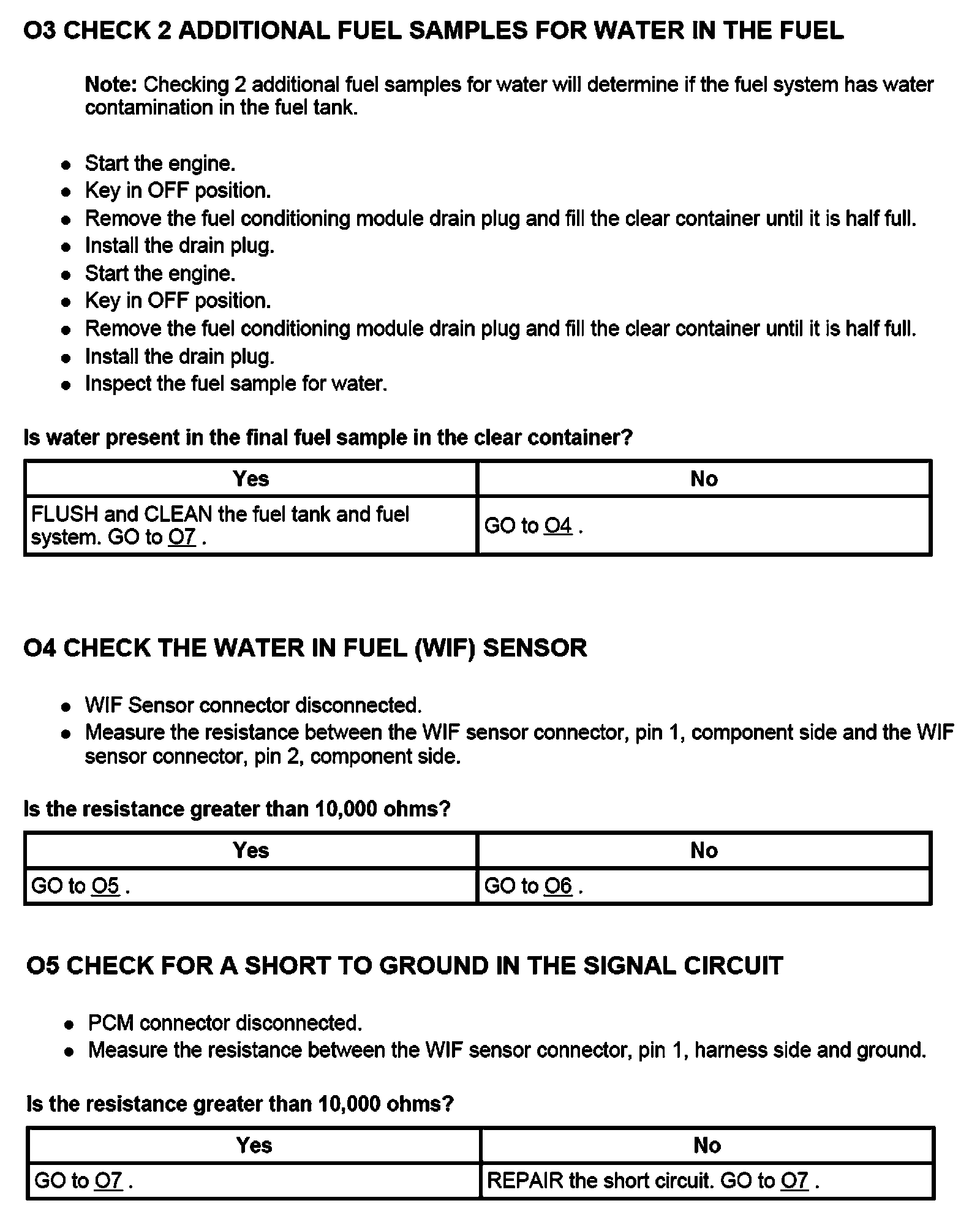 PINPOINT TEST O: WATER IN FUEL (WIF) SENSOR