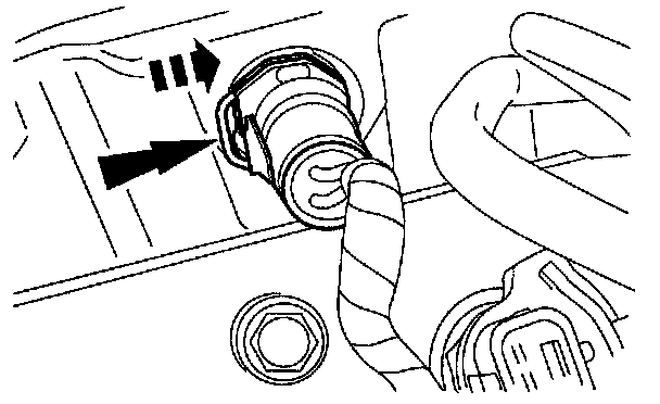 6. Using the special tool, push the fuel injector electrical connector out of the rocker arm carrier.