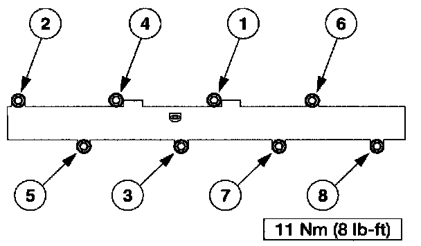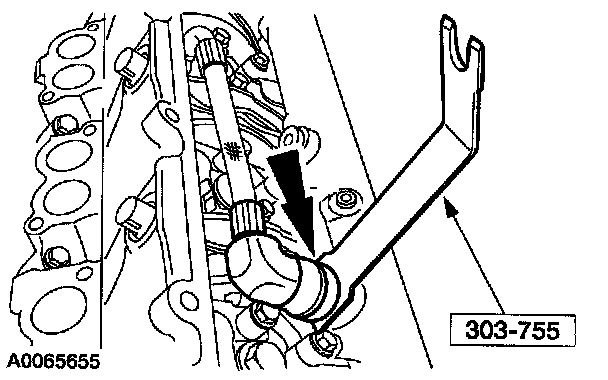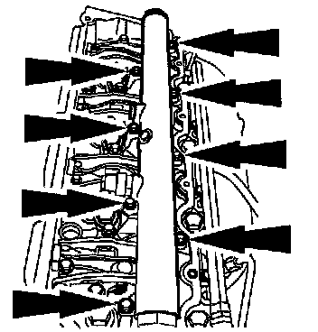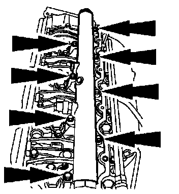 ^ Install the high-pressure oil rail. Install the bolts finger tight.