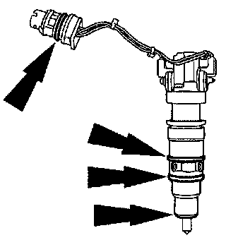 CAUTION: Do not attempt to put battery voltage to the fuel injector or damage to the fuel injector will occur.