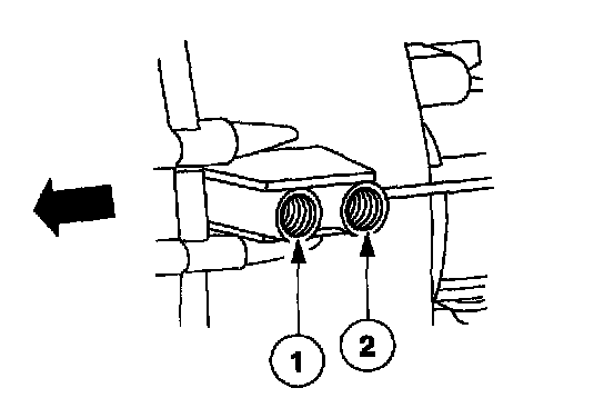 ^ For vehicles with a gasoline engine and manual transmission, or a diesel engine and manual or automatic transmission, position the pin in the rearward (RH) threaded hole in the transmission case.