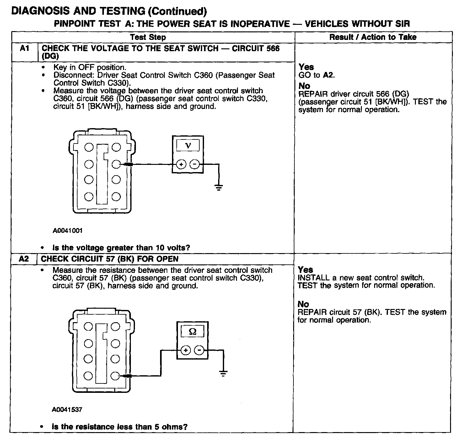 PINPOINT TEST A: THE POWER SEAT IS INOPERATIVE - VEHICLES WITHOUT SIR