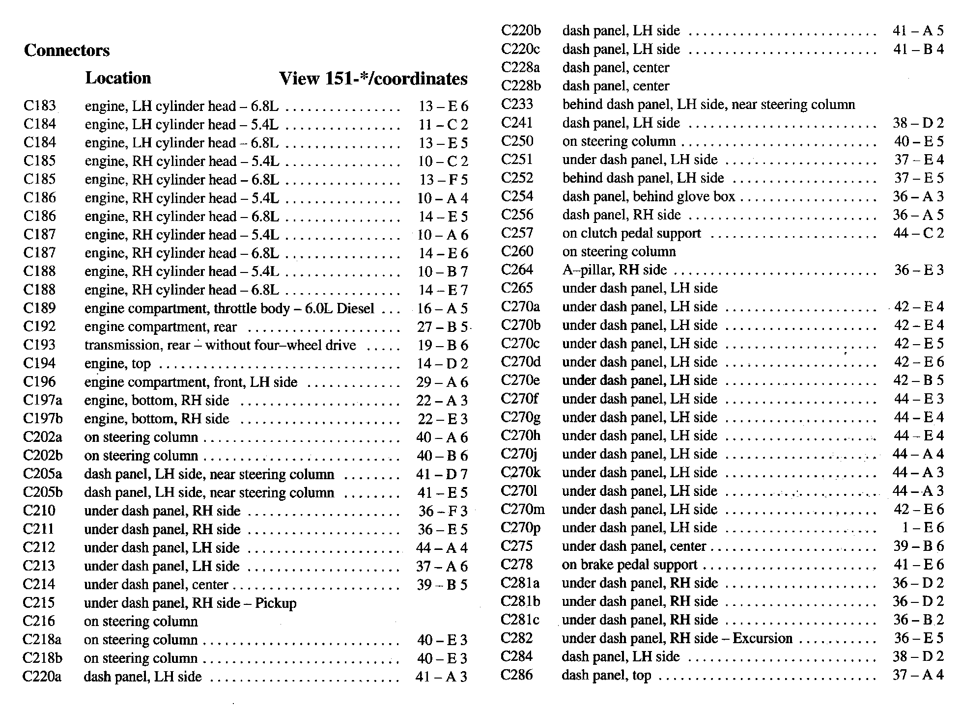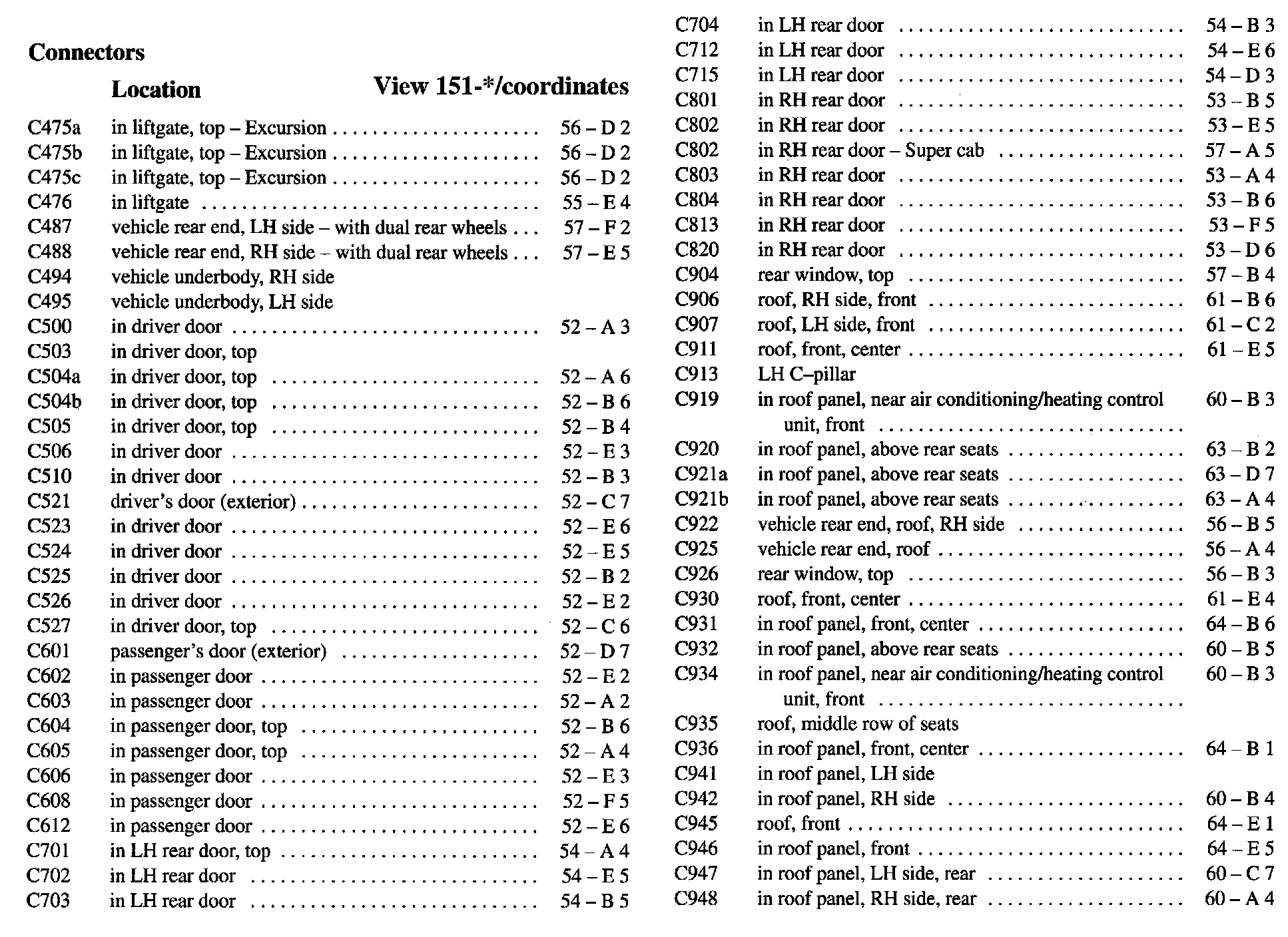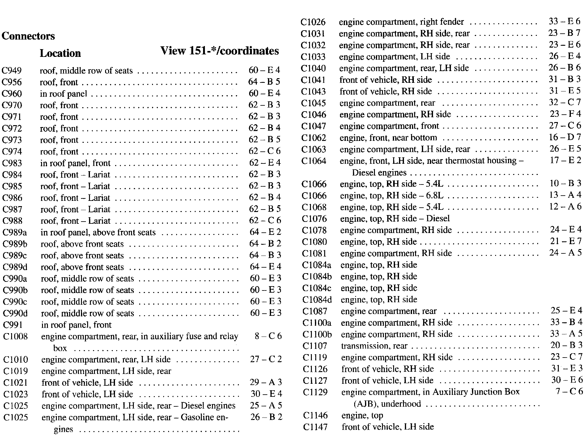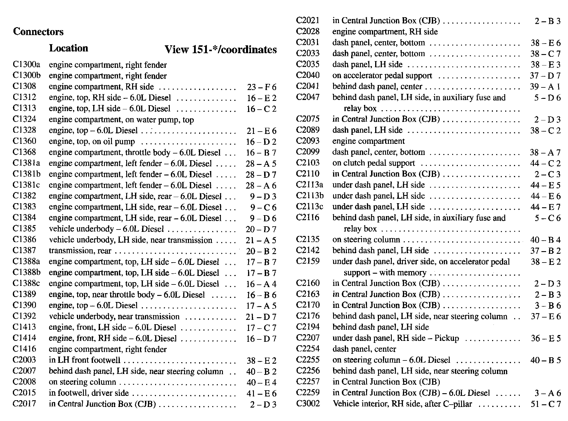 PLEASE NOTE: If a link on the Connector Location Index to a view is not provided, that means that the Connector and/or View in question does NOT apply to the vehicle model selected.