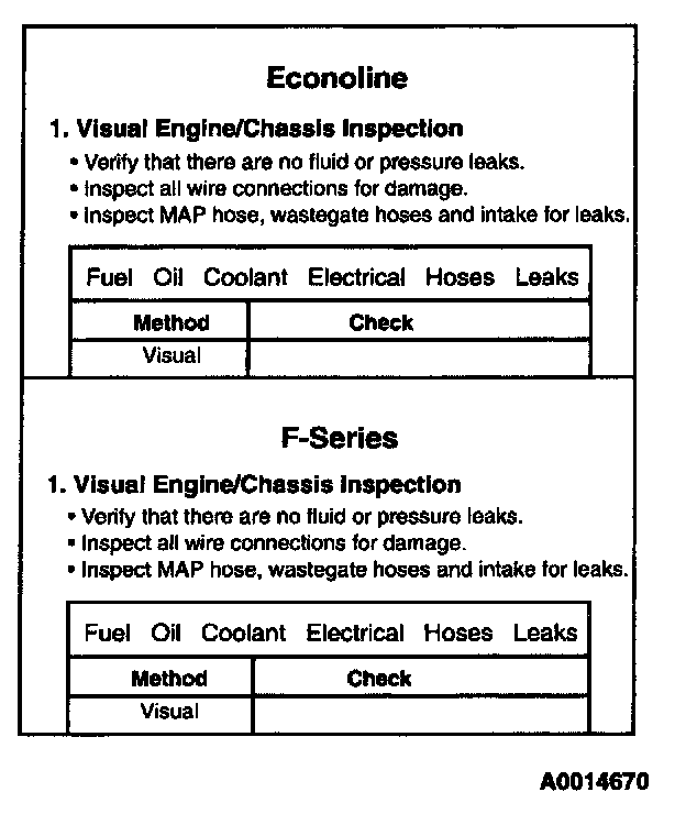 This is a visual inspection to check the general condition of the engine and chassis. Look for obvious causes of a loss in performance.