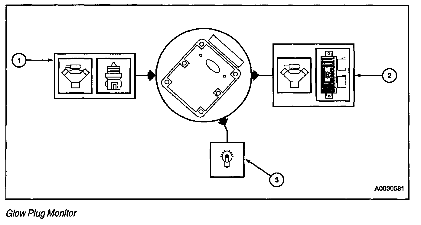 The Glow Plug Monitor Self Test is a functional KOER test of the Powertrain Control Module (PCM) performed on demand with the engine running and the A/C off. The PCM will activate the GPCM which monitors the glow plugs. The pedal may be used to increase the engine speed to increase voltage if needed. A fault must be present at the time of testing for the test to detect a fault. The trouble codes will be sent to the PCM on the diagnostic line and outputted to the scan tool.