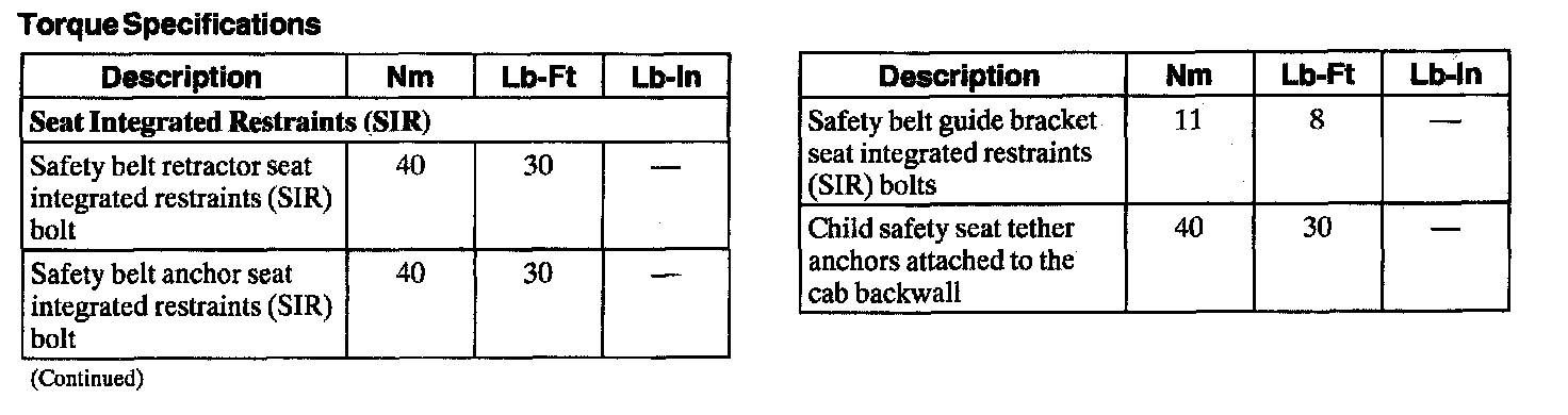 Seat Belt Systems: Specifications