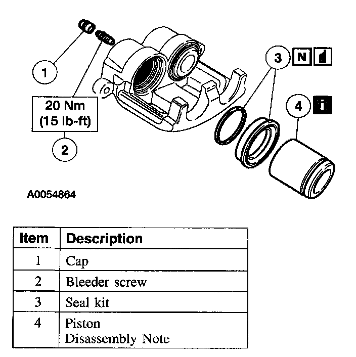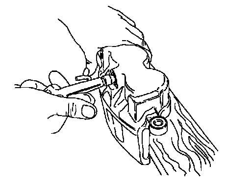 1. Place a piece of wood in the caliper. Remove the piston by applying moderate air pressure through the bleeder screw port.
