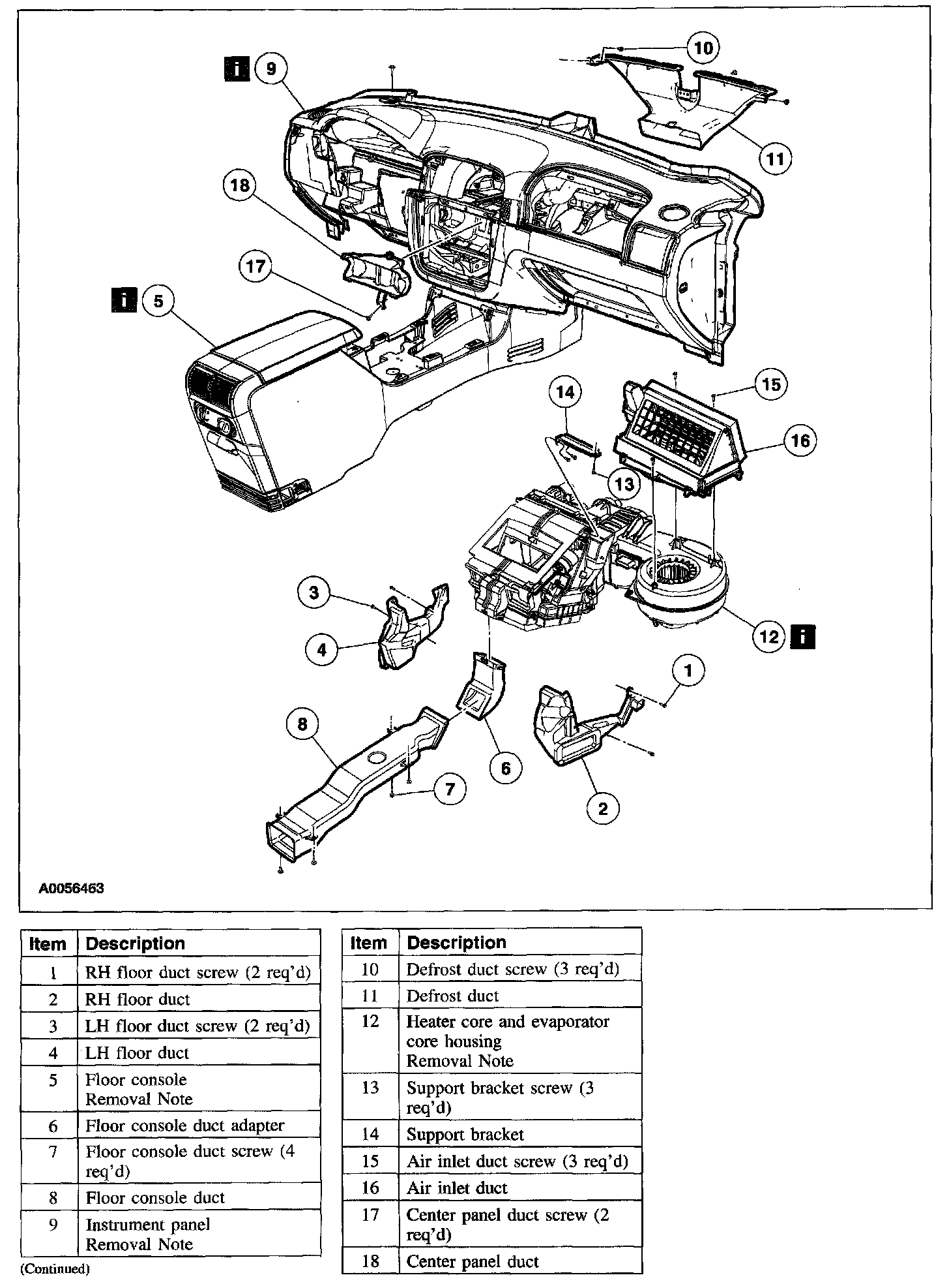 Item 12: Heater Core and Evaporator Core Housing Removal Note