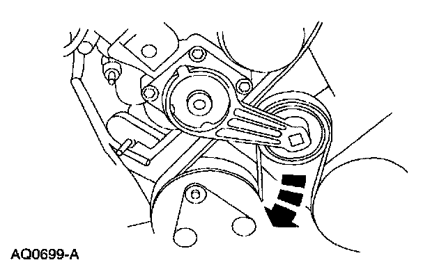 1. Rotate the tensioner clockwise and remove the drive belt.