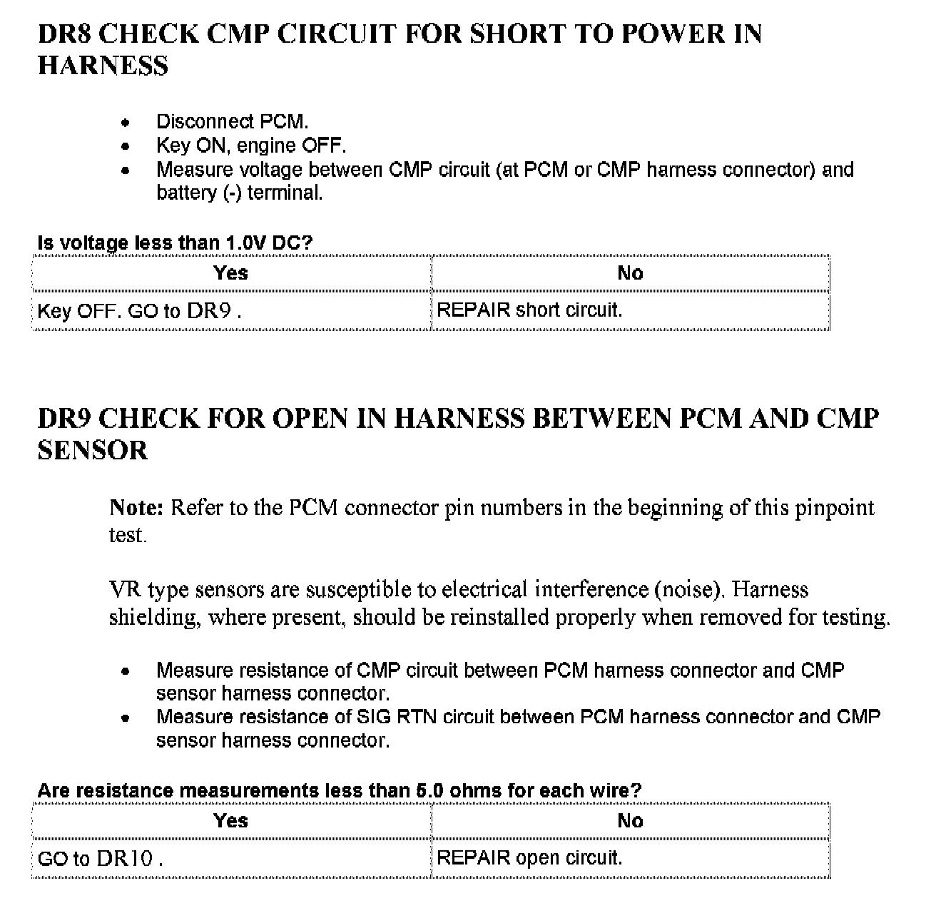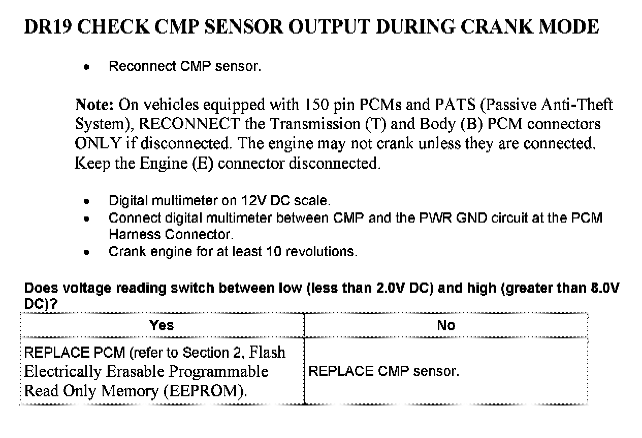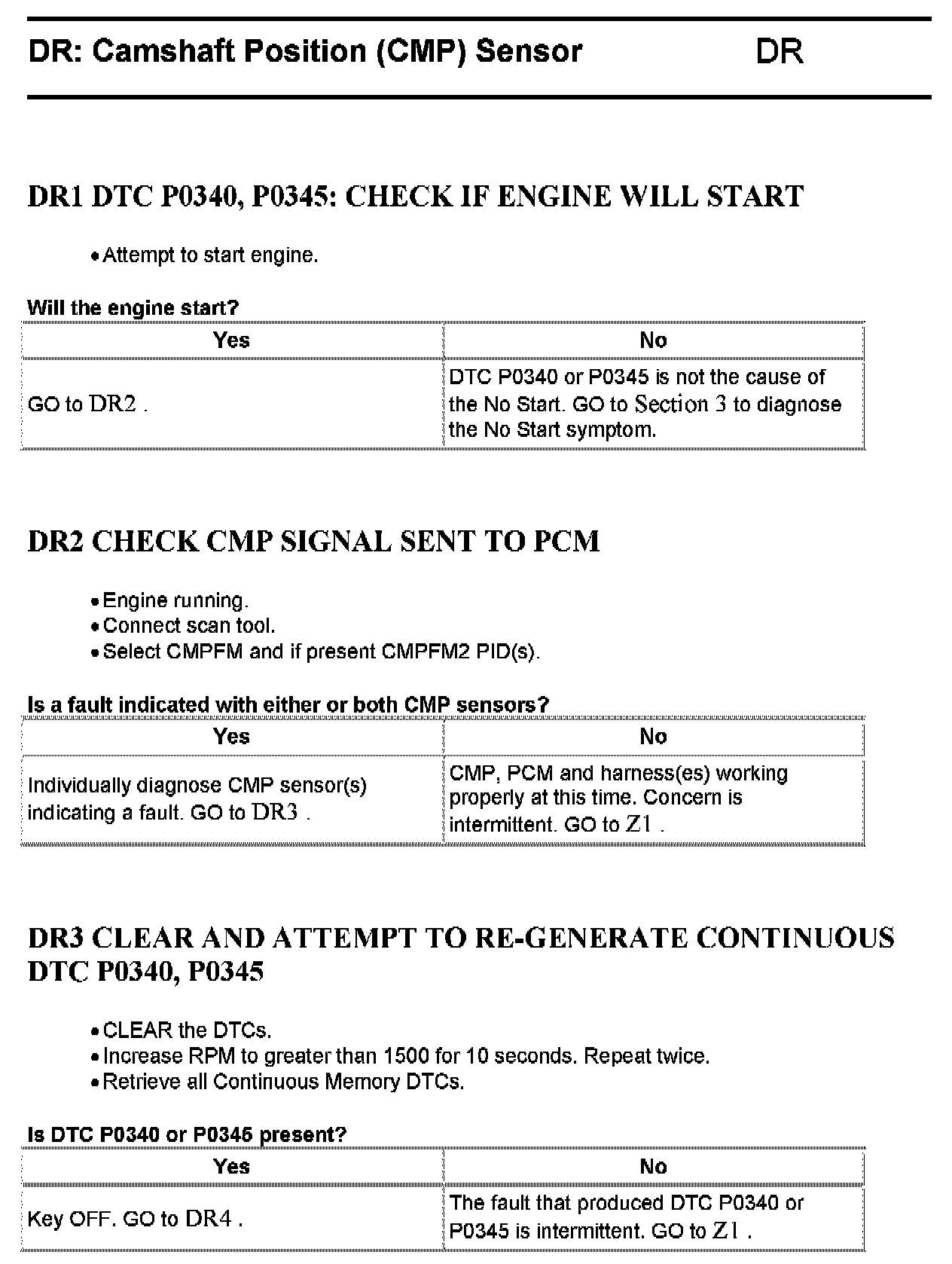 Tests DR: Camshaft Position (CMP) Sensor