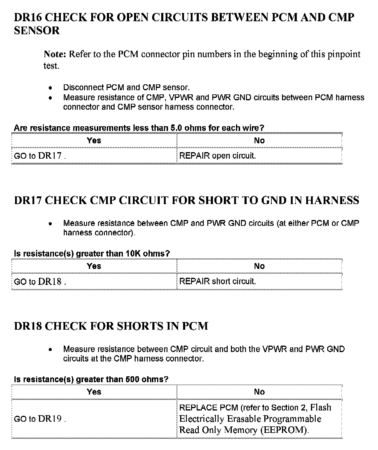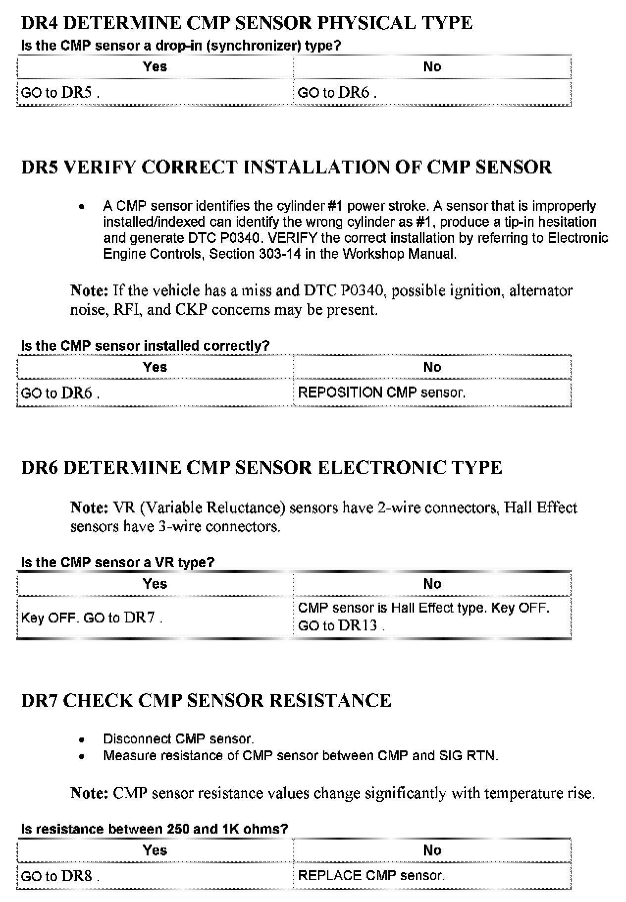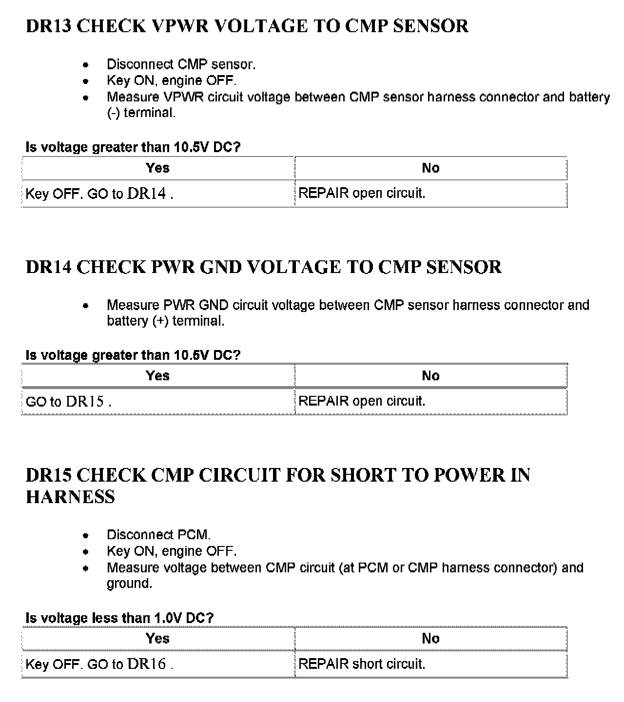 Tests DR: Camshaft Position (CMP) Sensor