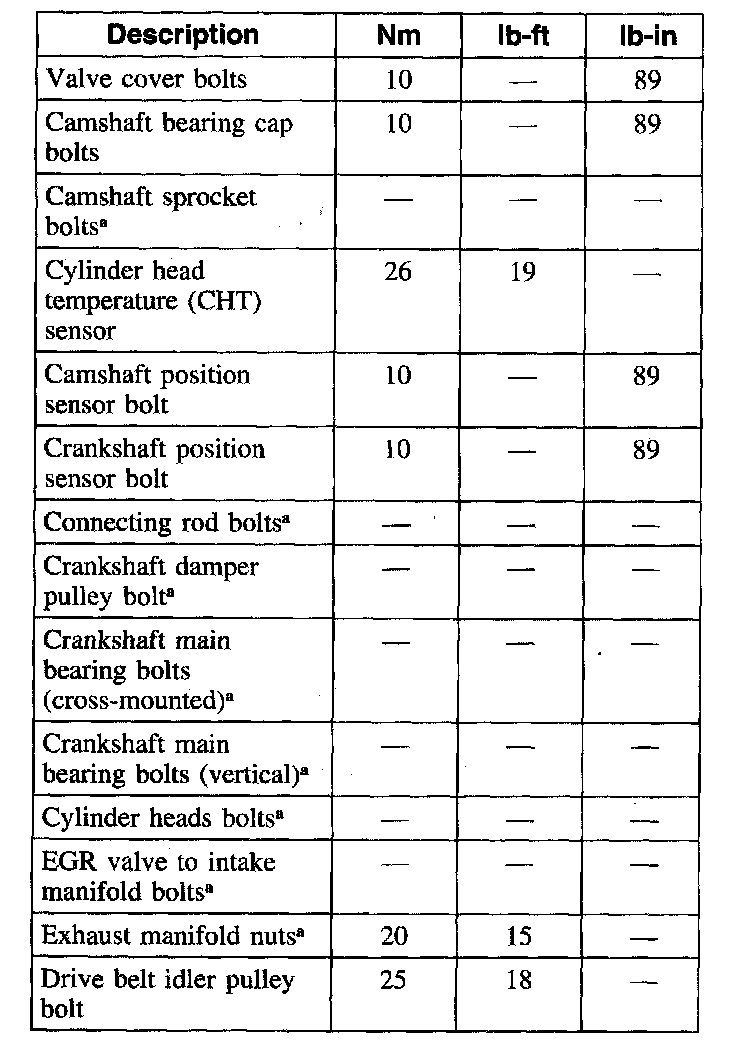 Engine Front Cover Bolts 25 Nm (18 ft. lbs.)
