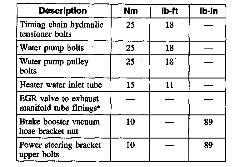Water Pump bolts 25 Nm (18 ft. lbs.)