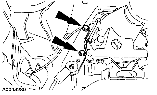 2. Vehicles equipped with a 4.6L engine, remove the seven engine-to-transmission retaining bolts.