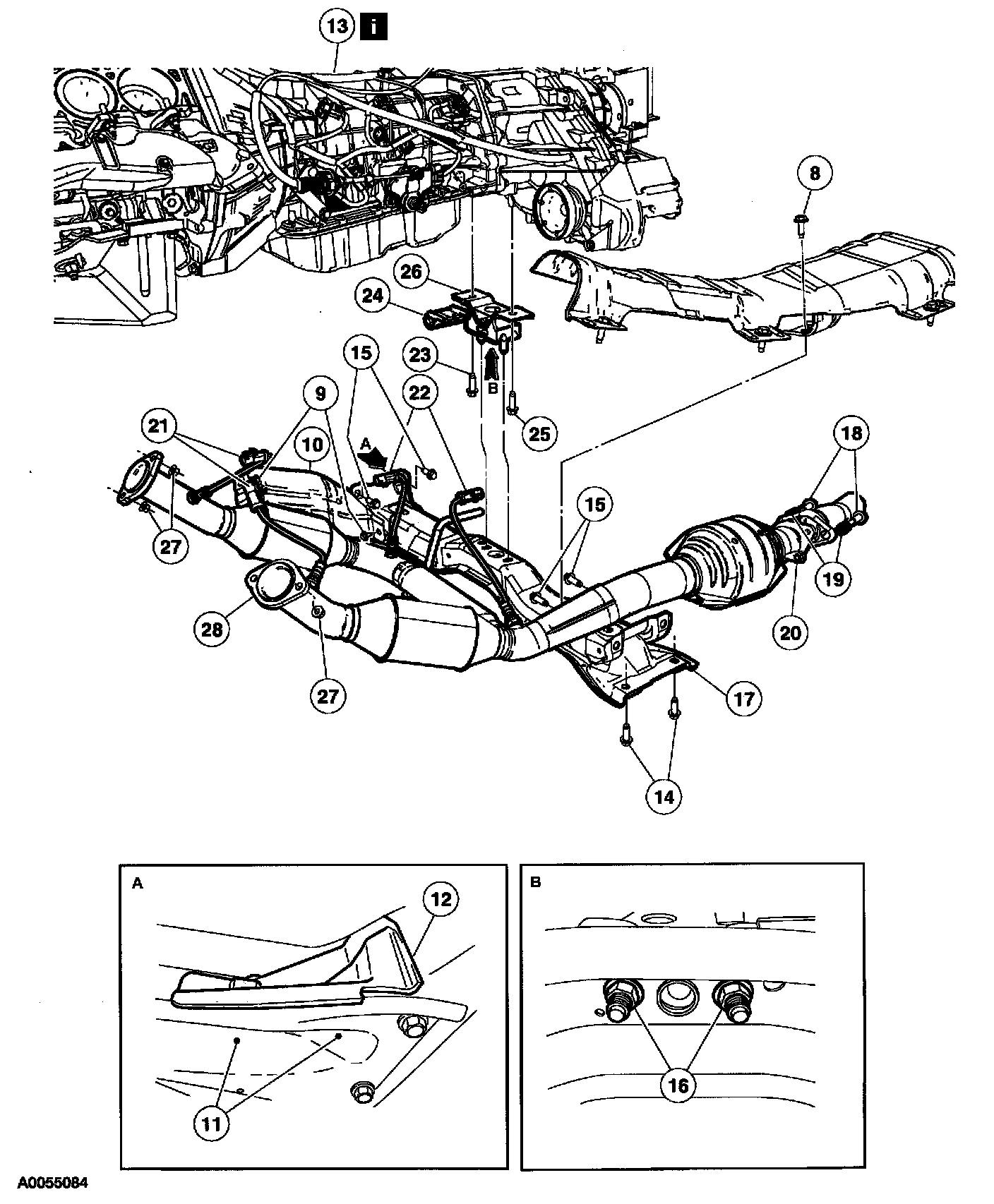 1. Vehicles equipped with a 4.6L engine, remove the front crossmember.