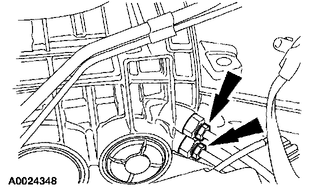 1. CAUTION: Do not damage the cooler tubes. Hold the transmission case fittings with a wrench.