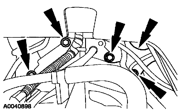 1. Position the bracket and fuel lines out of the way to gain access to the other transmission retaining screws.