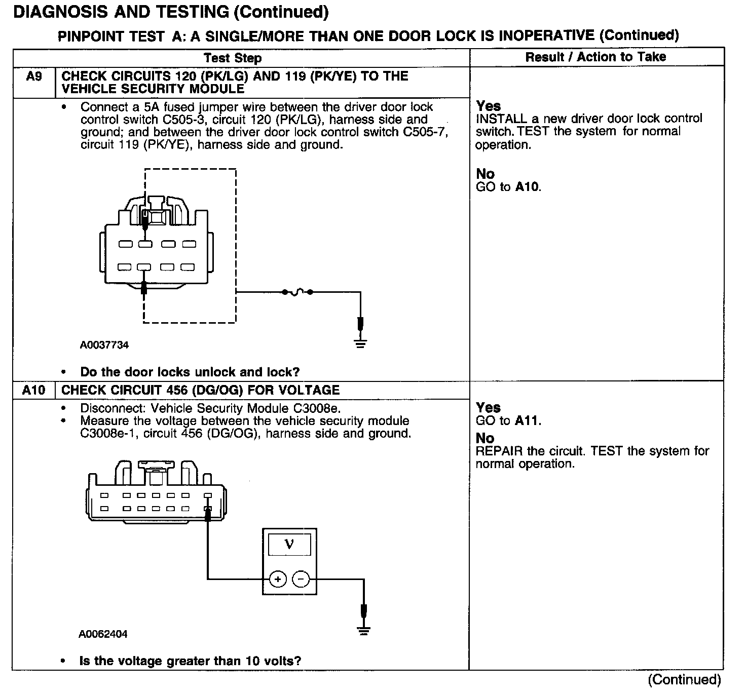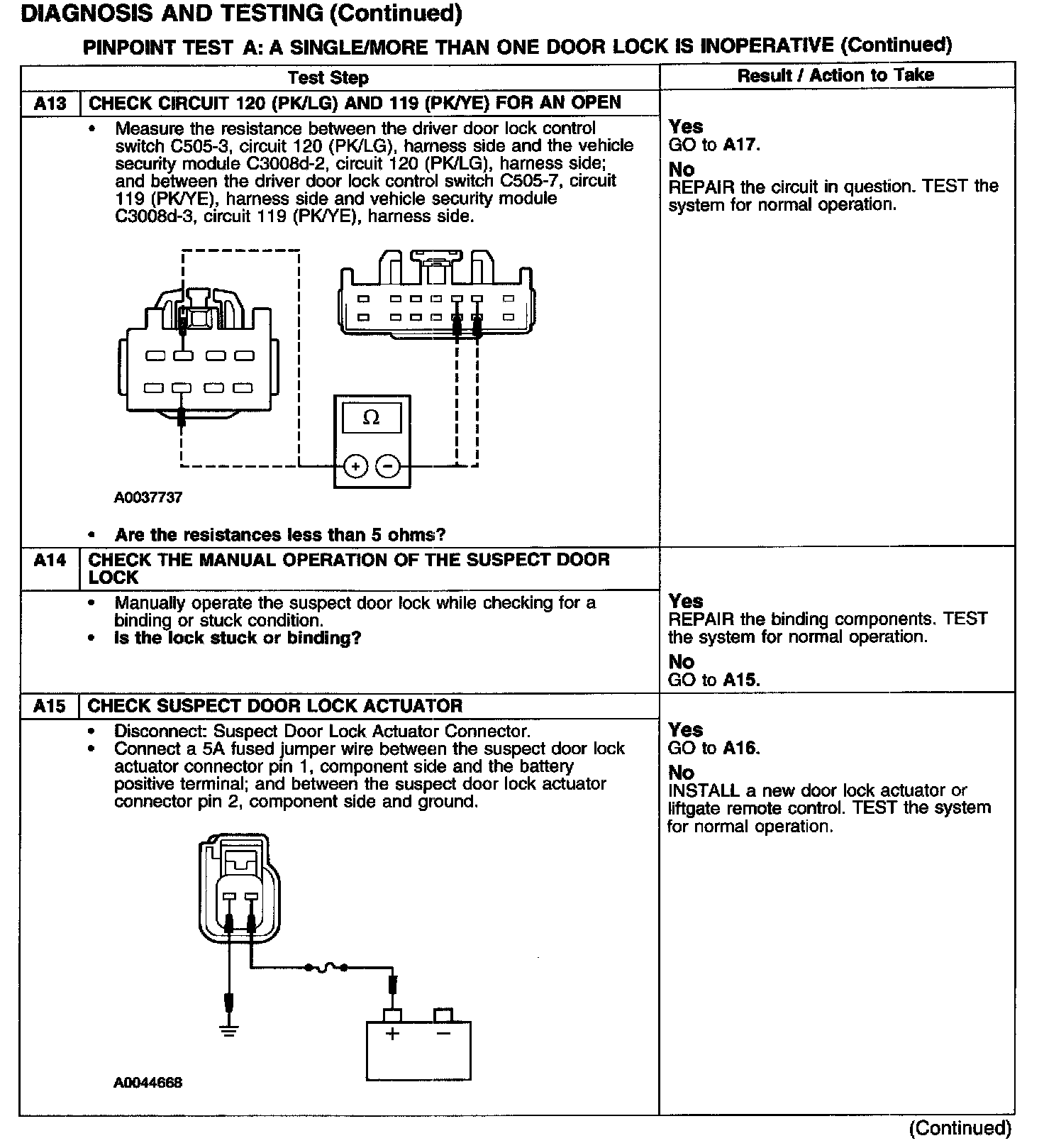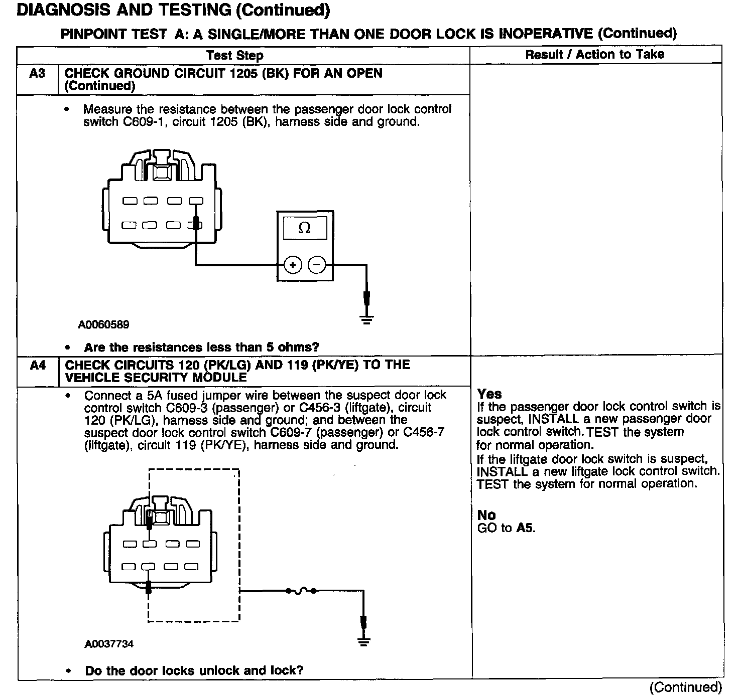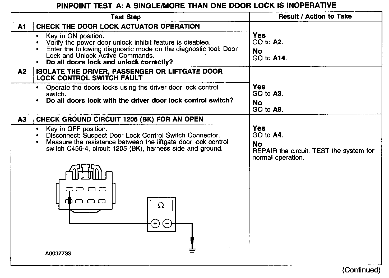 PINPOINT TEST A: A SINGLE/MORE THAN ONE DOOR LOCK IS INOPERATIVE-POWER LOCKINGTest A1-A3: