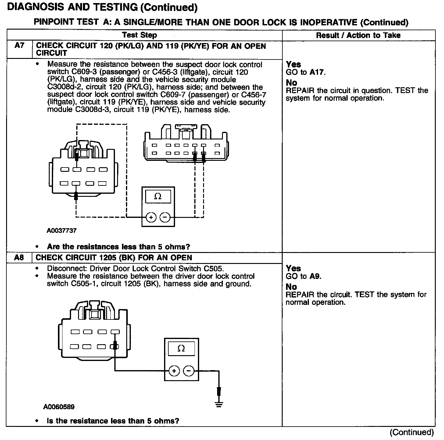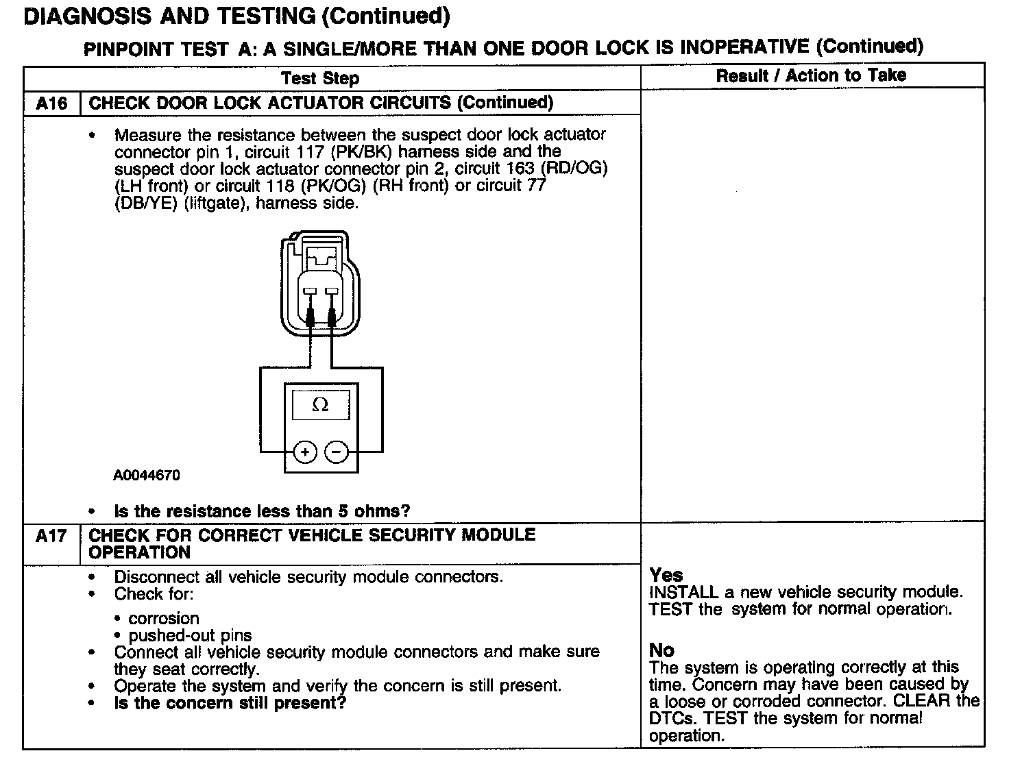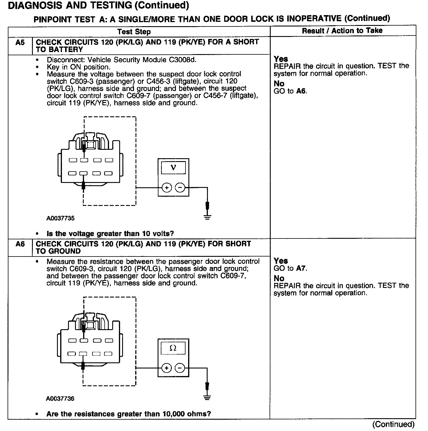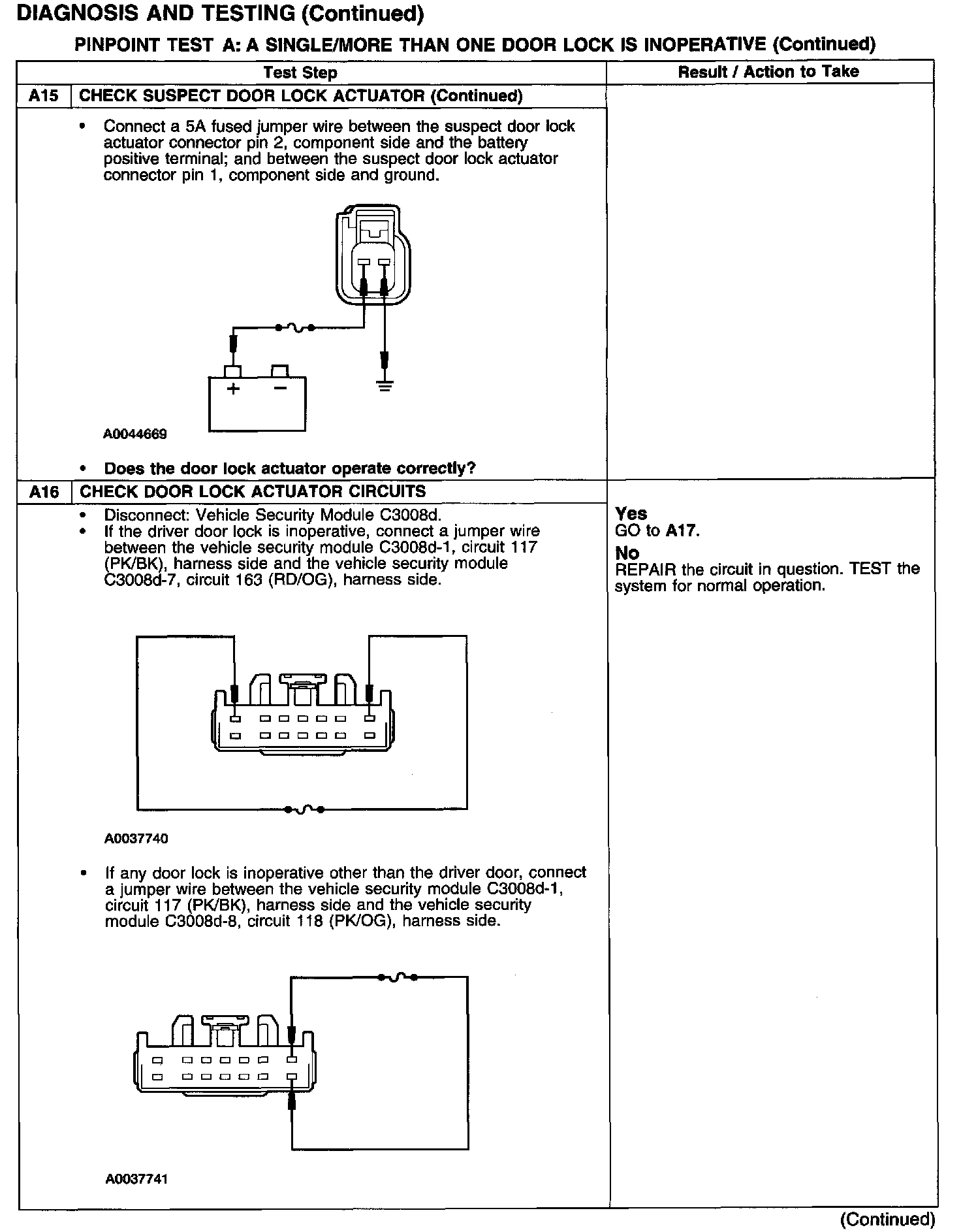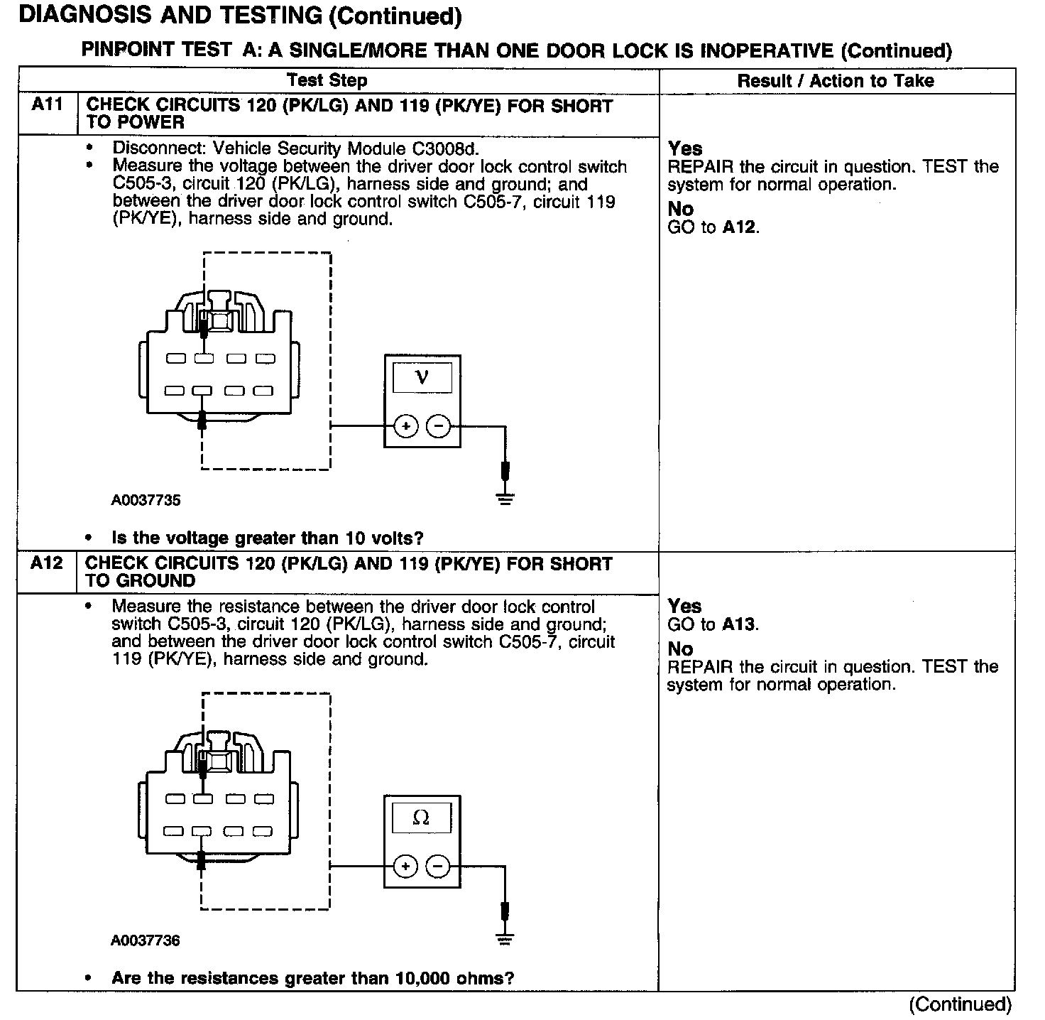PINPOINT TEST A: A SINGLE/MORE THAN ONE DOOR LOCK IS INOPERATIVE-POWER LOCKINGTest A1-A3: