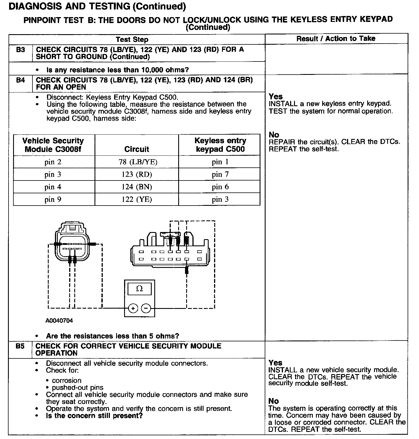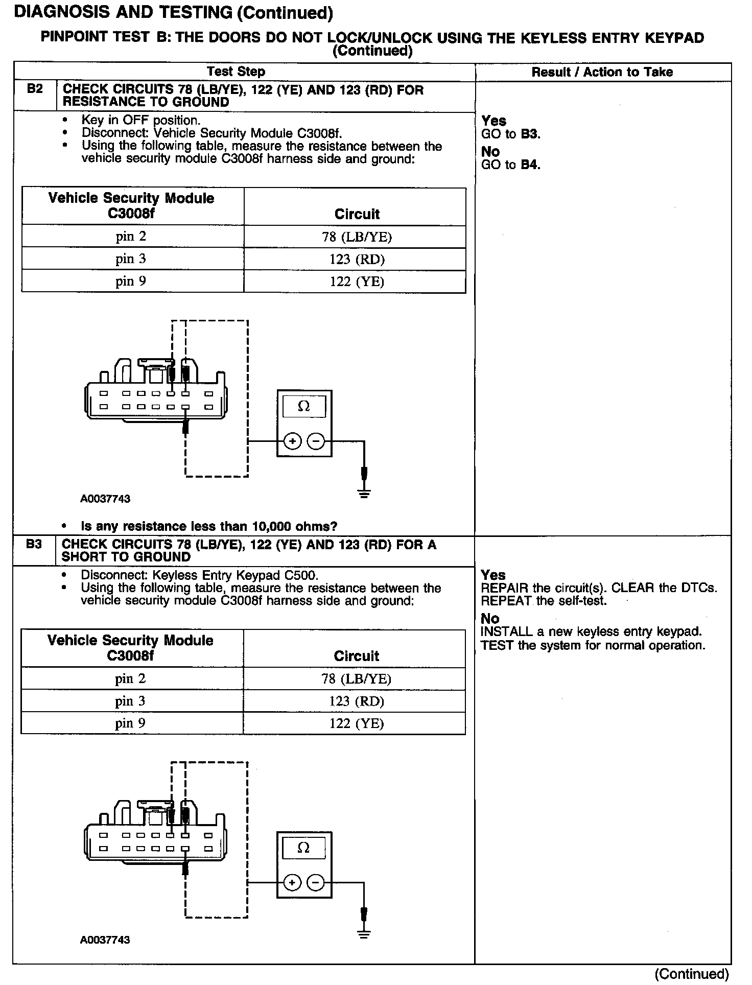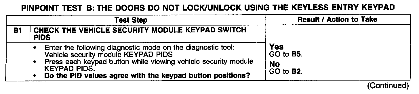 PINPOINT TEST B: THE DOORS DO NOT LOCK/UNLOCK USING THE KEYLESS ENTRY KEYPADTest B1: