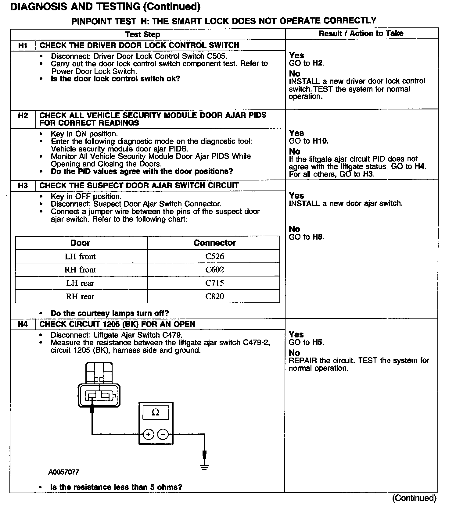PINPOINT TEST H: THE SMART LOCK DOES NOT OPERATE CORRECTLYTest H1-H4: