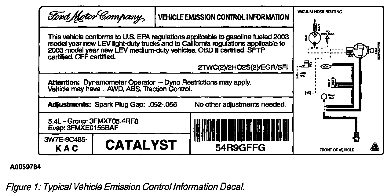 Each vehicle has a decal (Figure 1) containing emission control information that applies specifically to the vehicle and engine. The specifications on the decal are critical to servicing emissions systems.