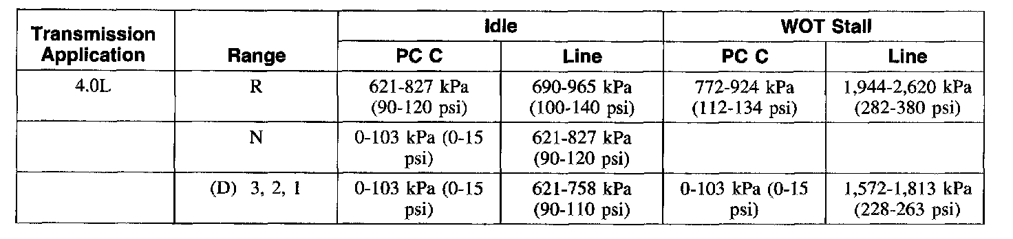 Line Pressure Chart