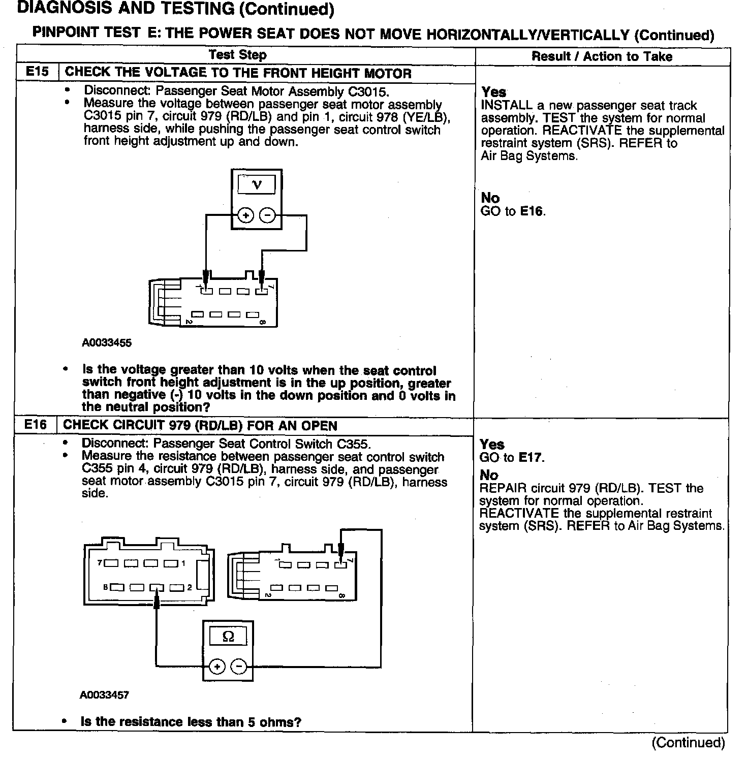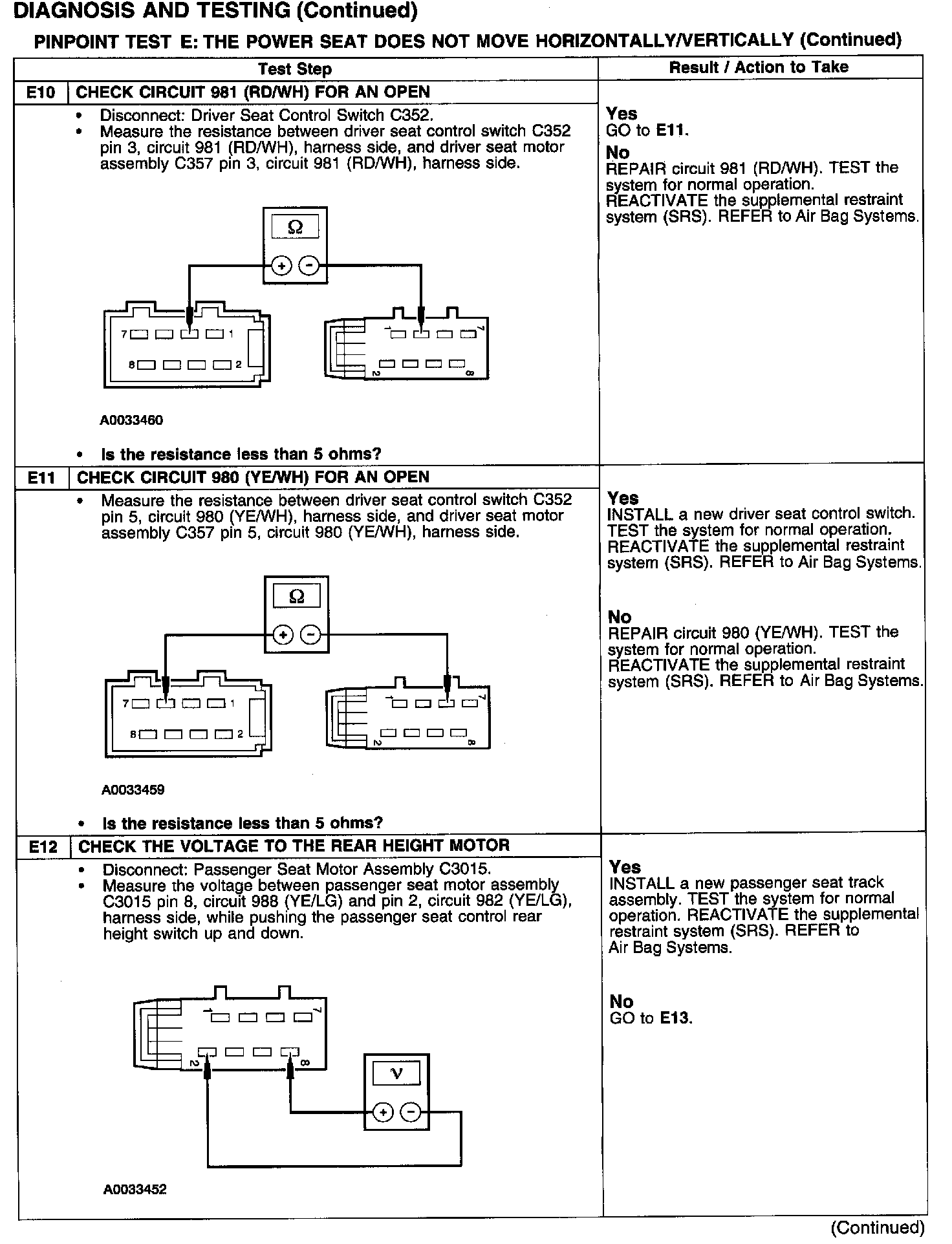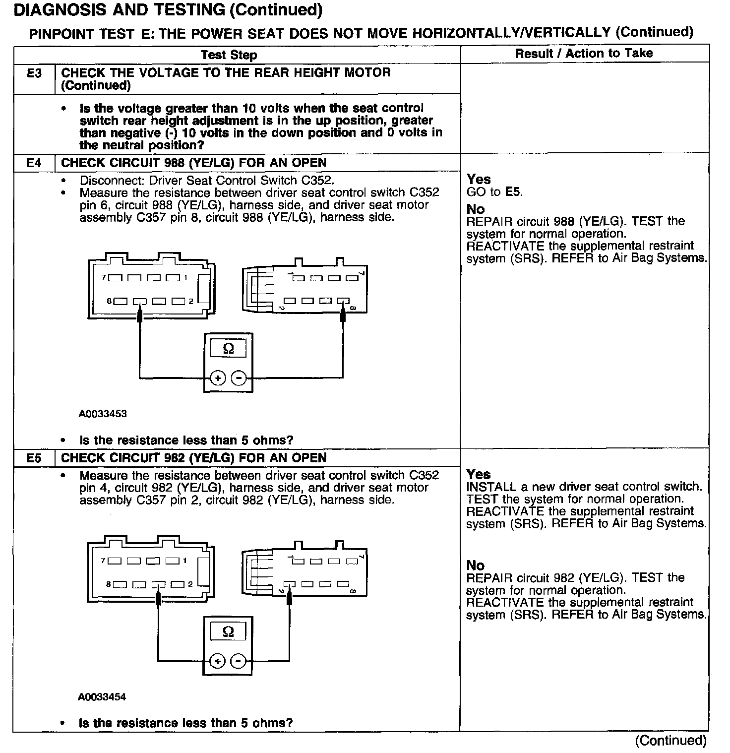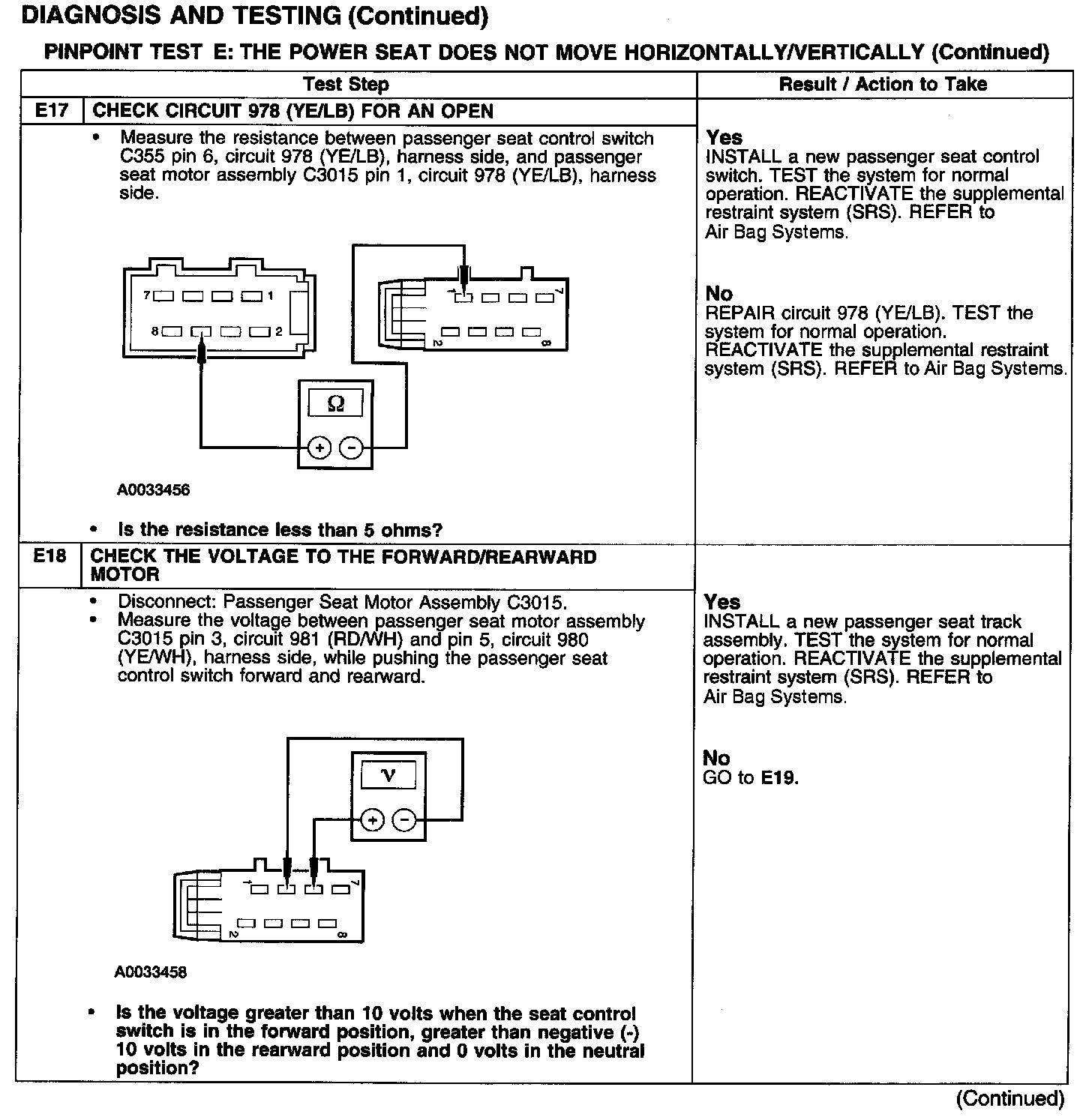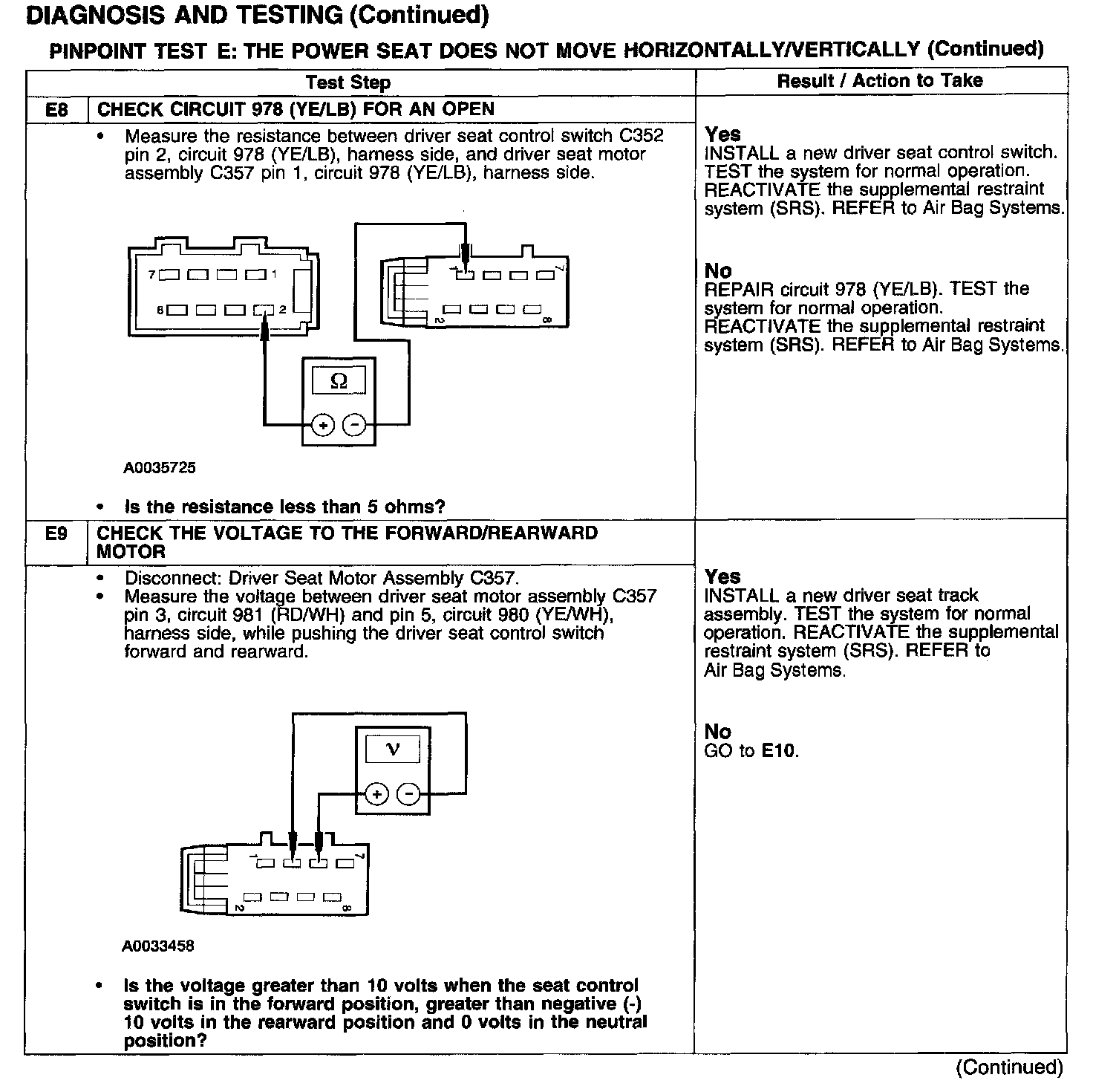 PINPOINT TEST E: THE POWER SEAT DOES NOT MOVE HORIZONTALLY/VERTICALLYTest E1-E3: