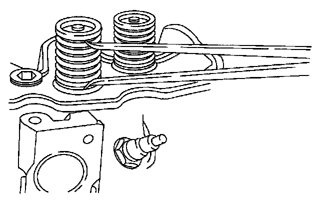 ^ Turn the valve spring and observe the space between the top of the valve spring and the square. Install a new valve spring if out of square.