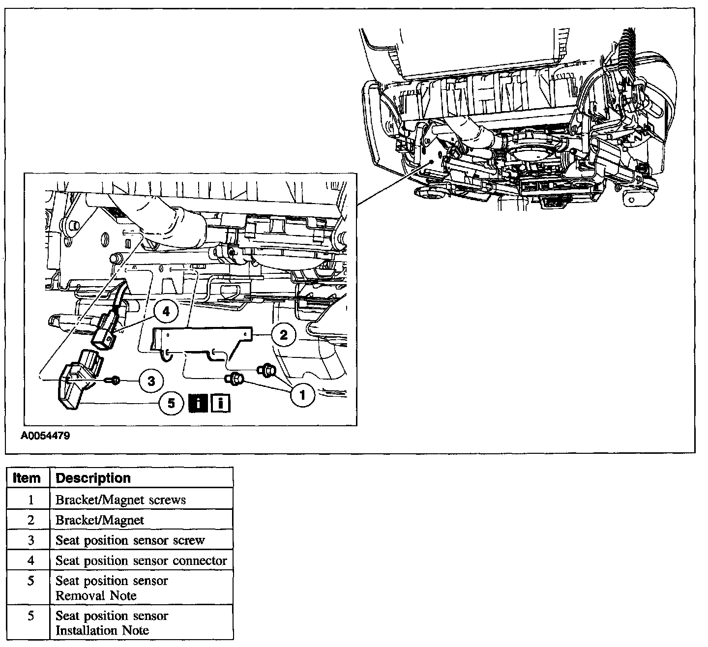 Item 5: Seat Position Sensor Removal Note