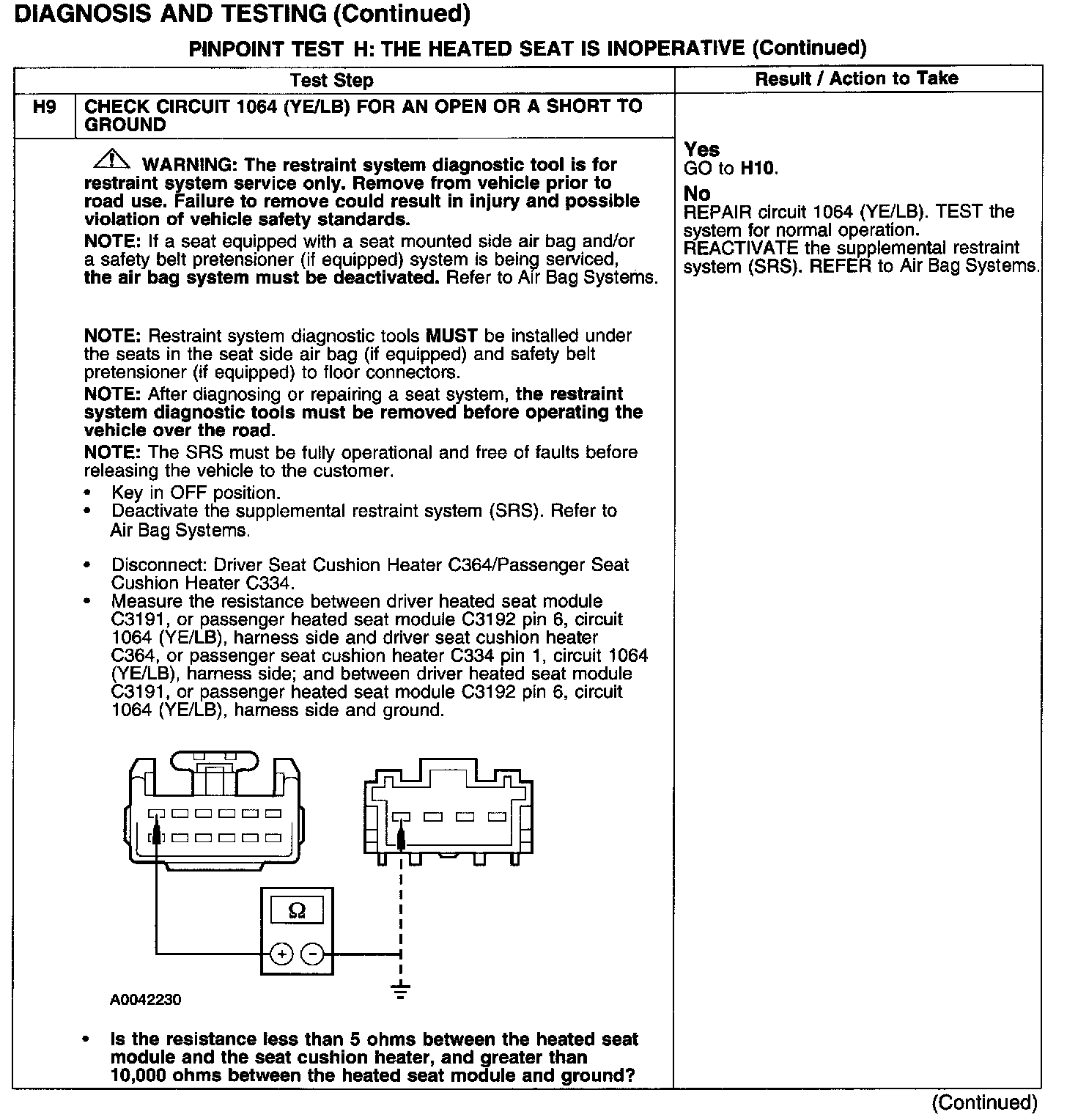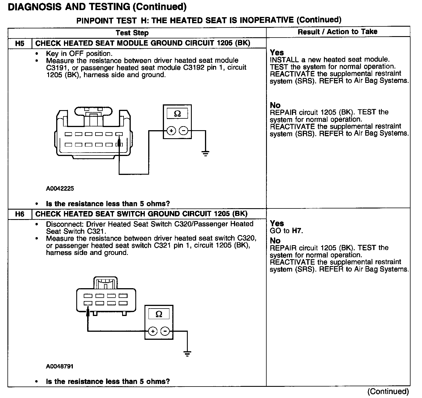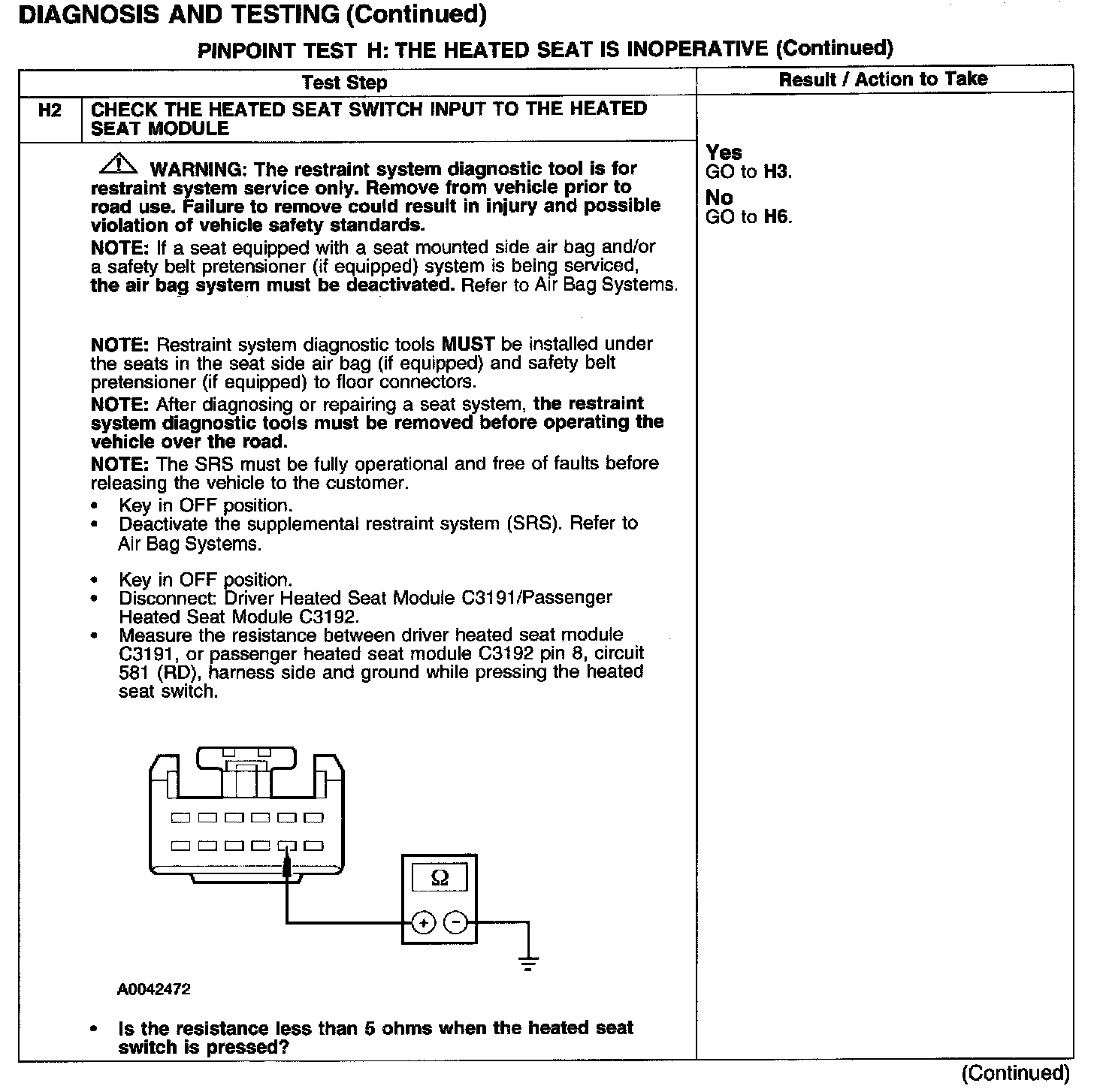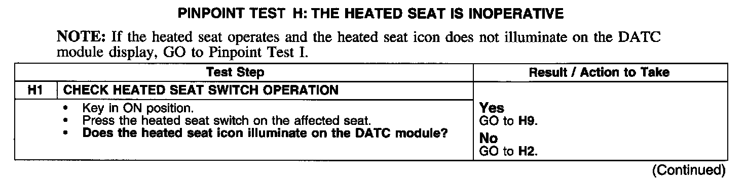 PINPOINT TEST H: THE HEATED SEAT IS INOPERATIVETest H1: