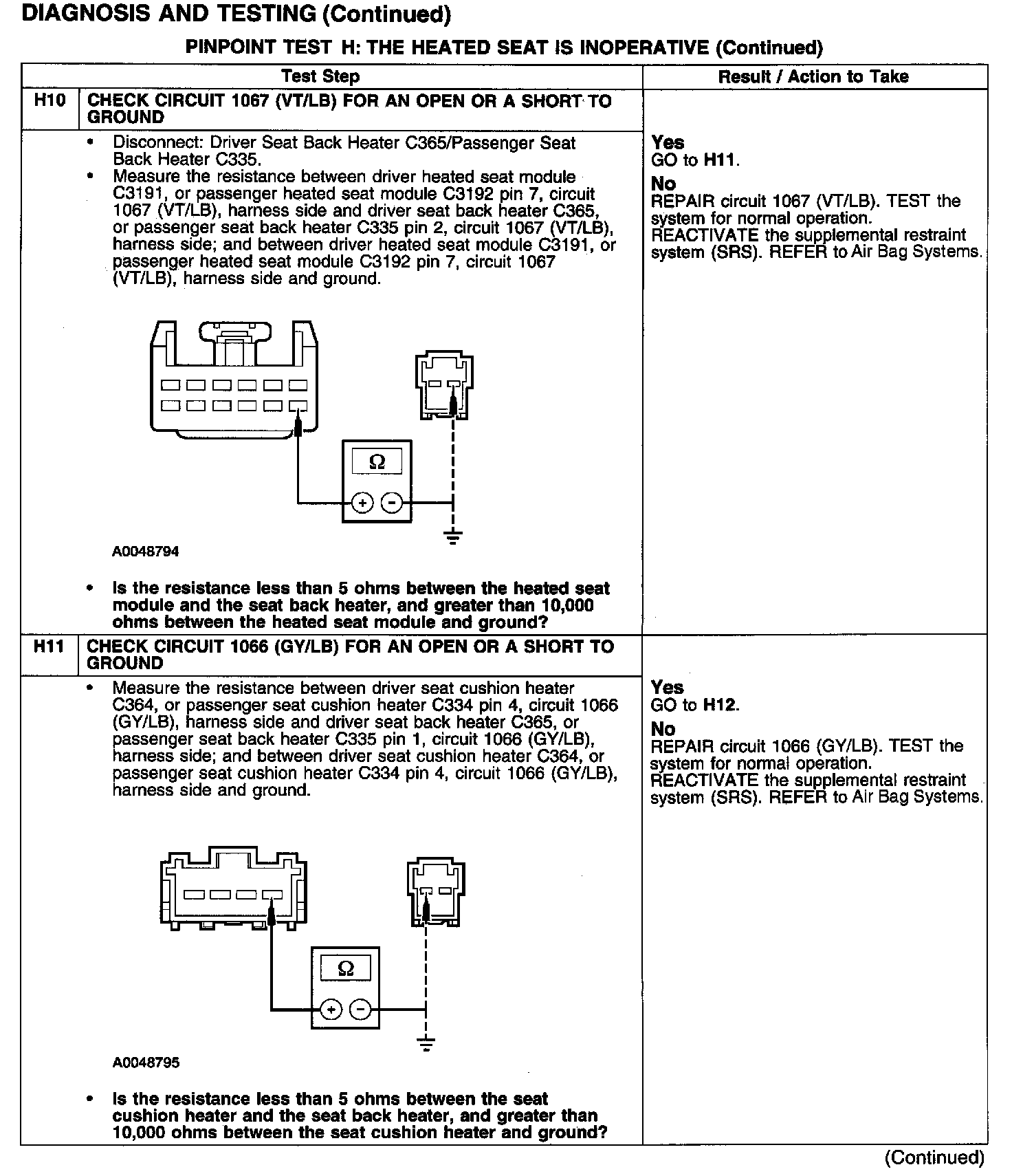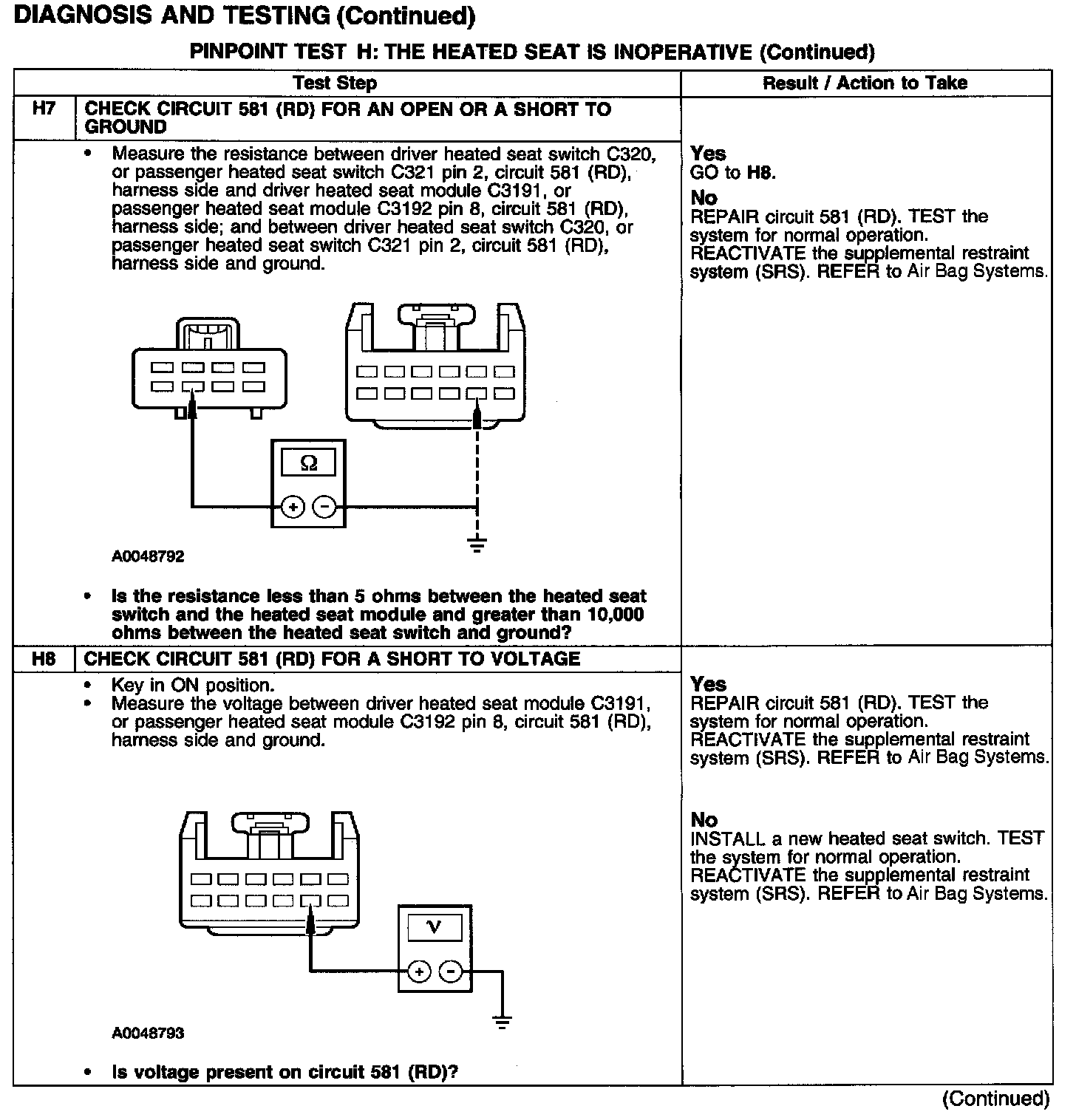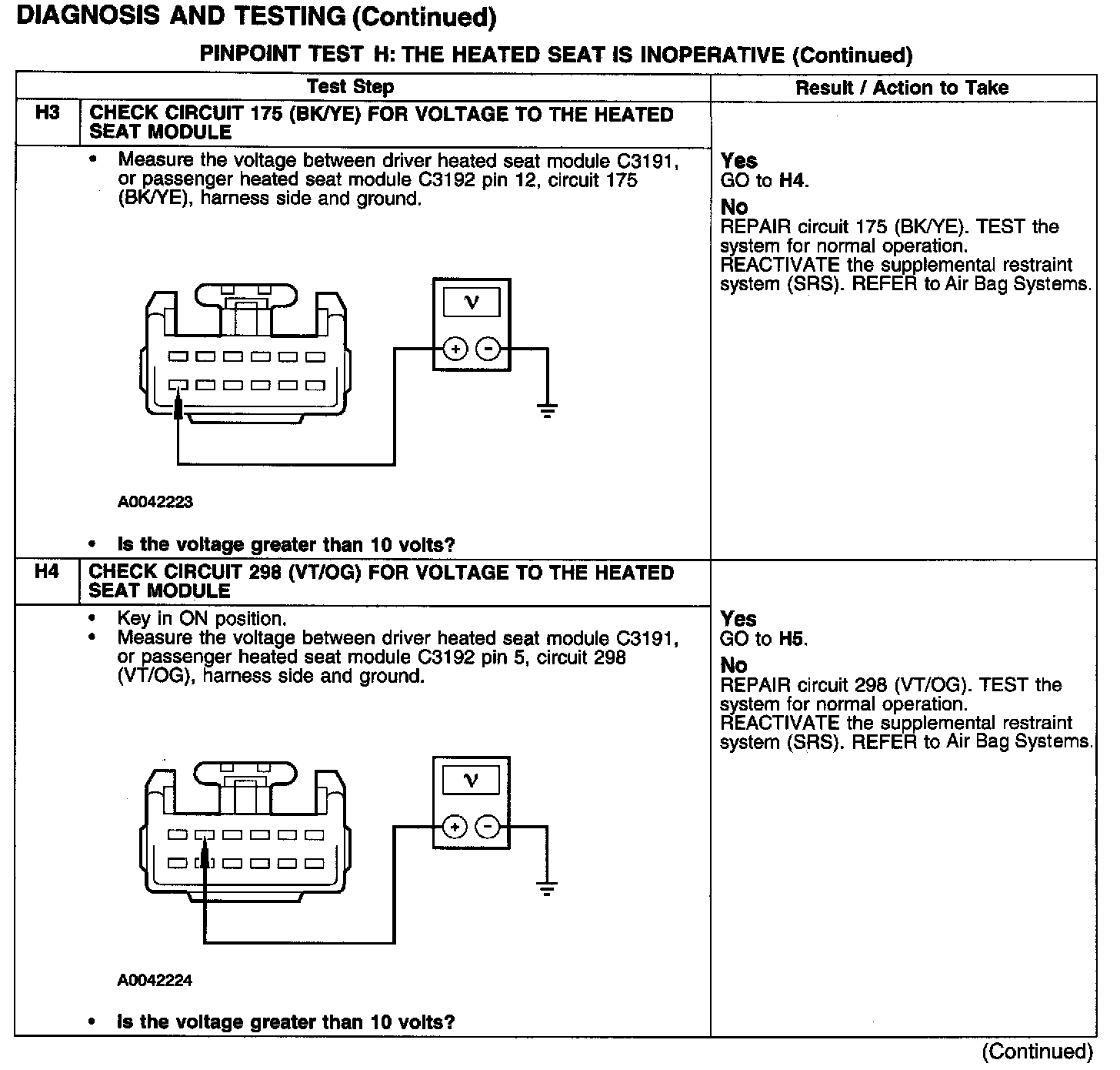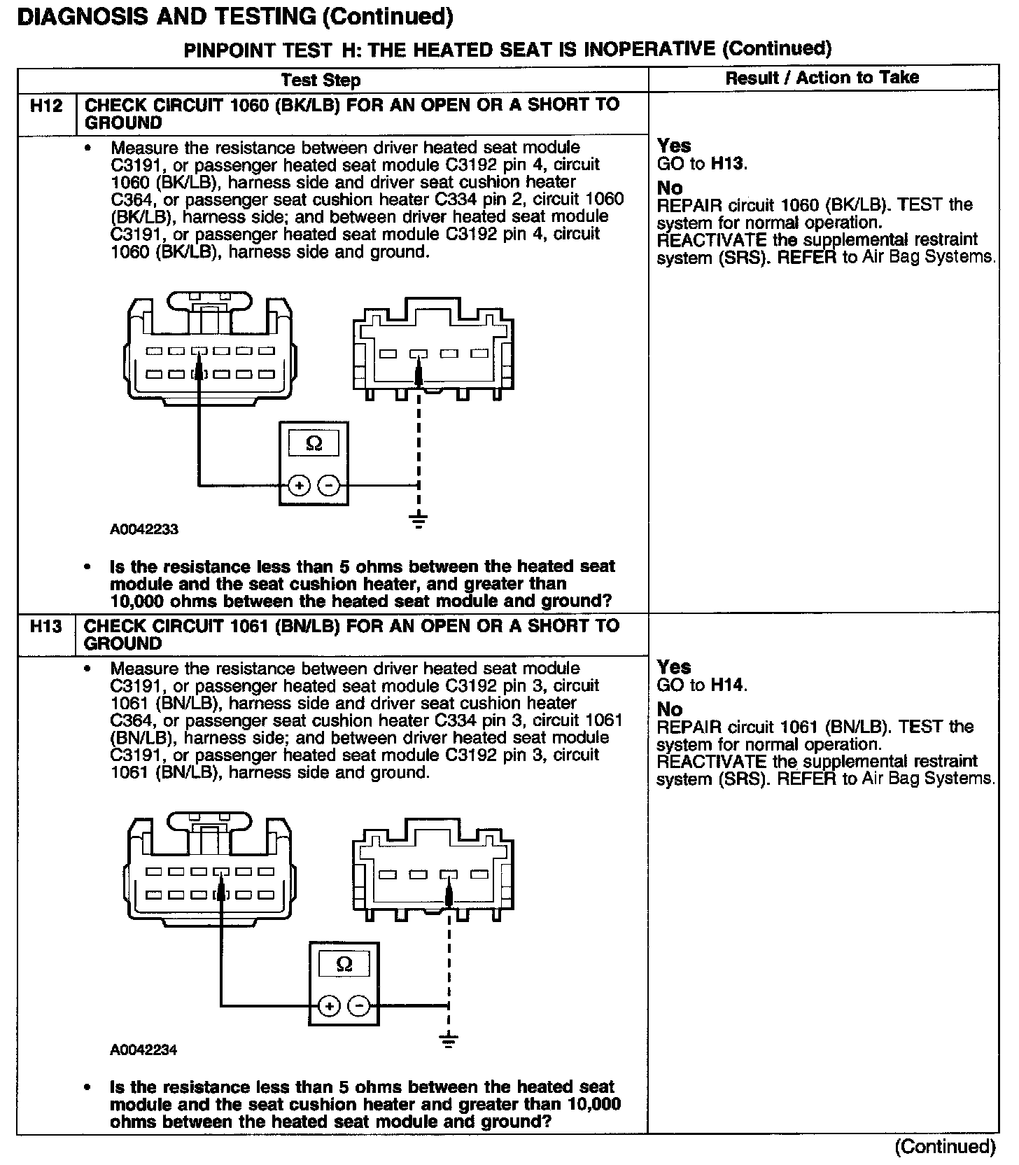 PINPOINT TEST H: THE HEATED SEAT IS INOPERATIVETest H1: