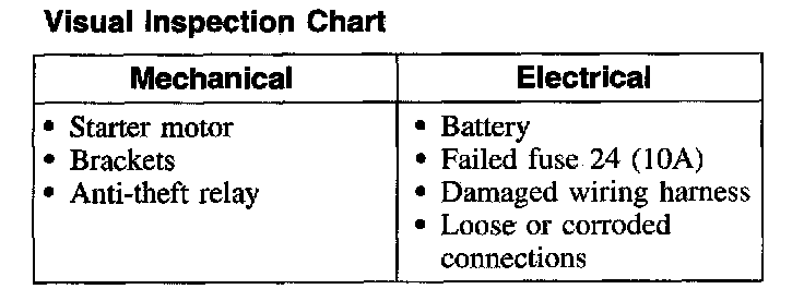 NOTE: When working on the starter system, make sure the anti-theft system is deactivated, if equipped.