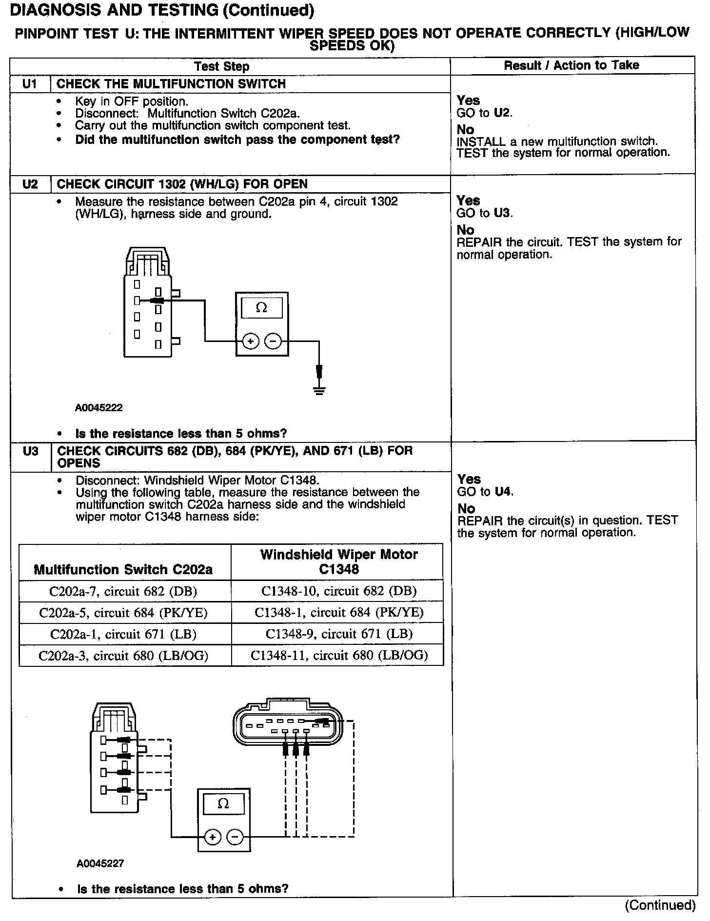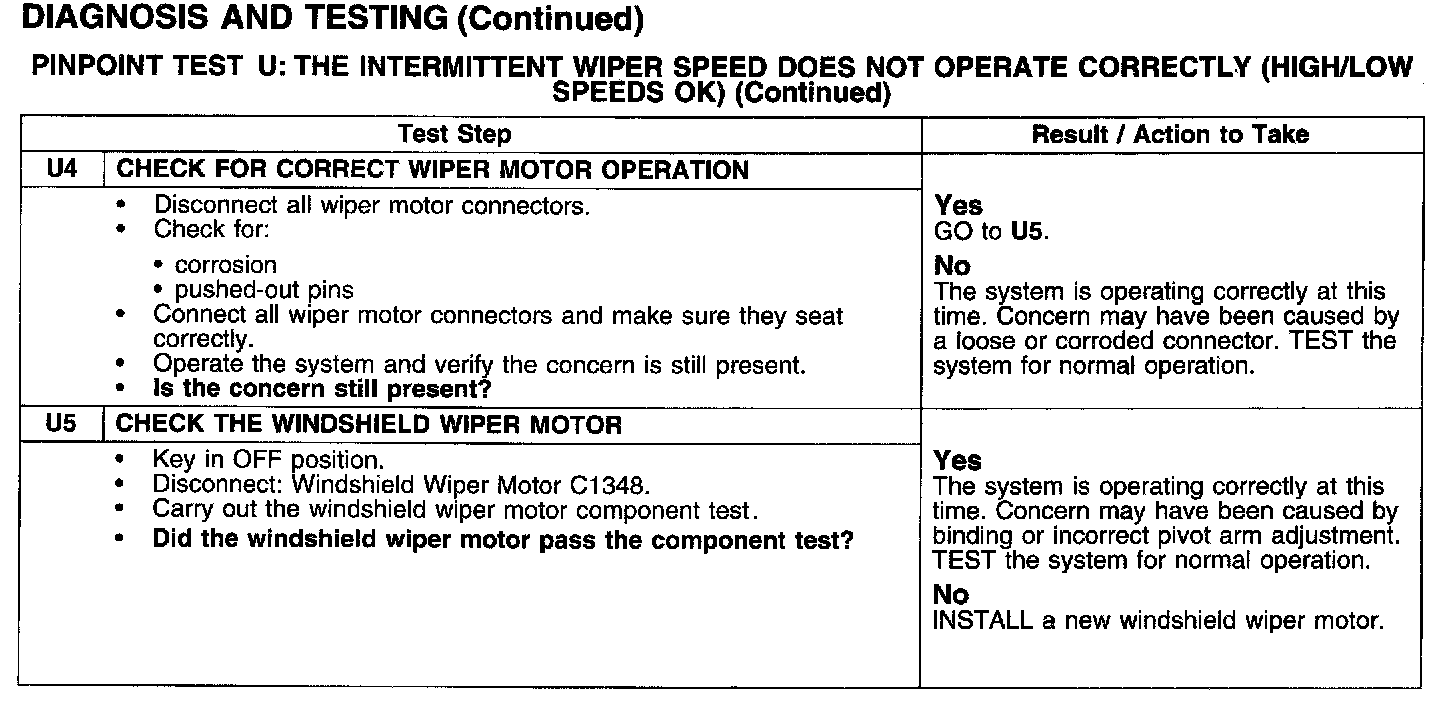 PINPOINT TEST U: THE INTERMITTENT WIPER SPEED DOES NOT OPERATE CORRECTLY (HIGH/LOW SPEEDS OK)Test U1-U3: